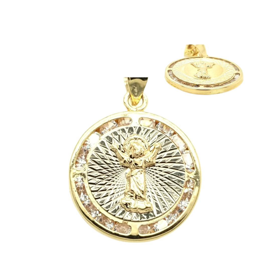 14K Gold Divine Child Baby Divino Nino Jesus Medallion Round Pendant