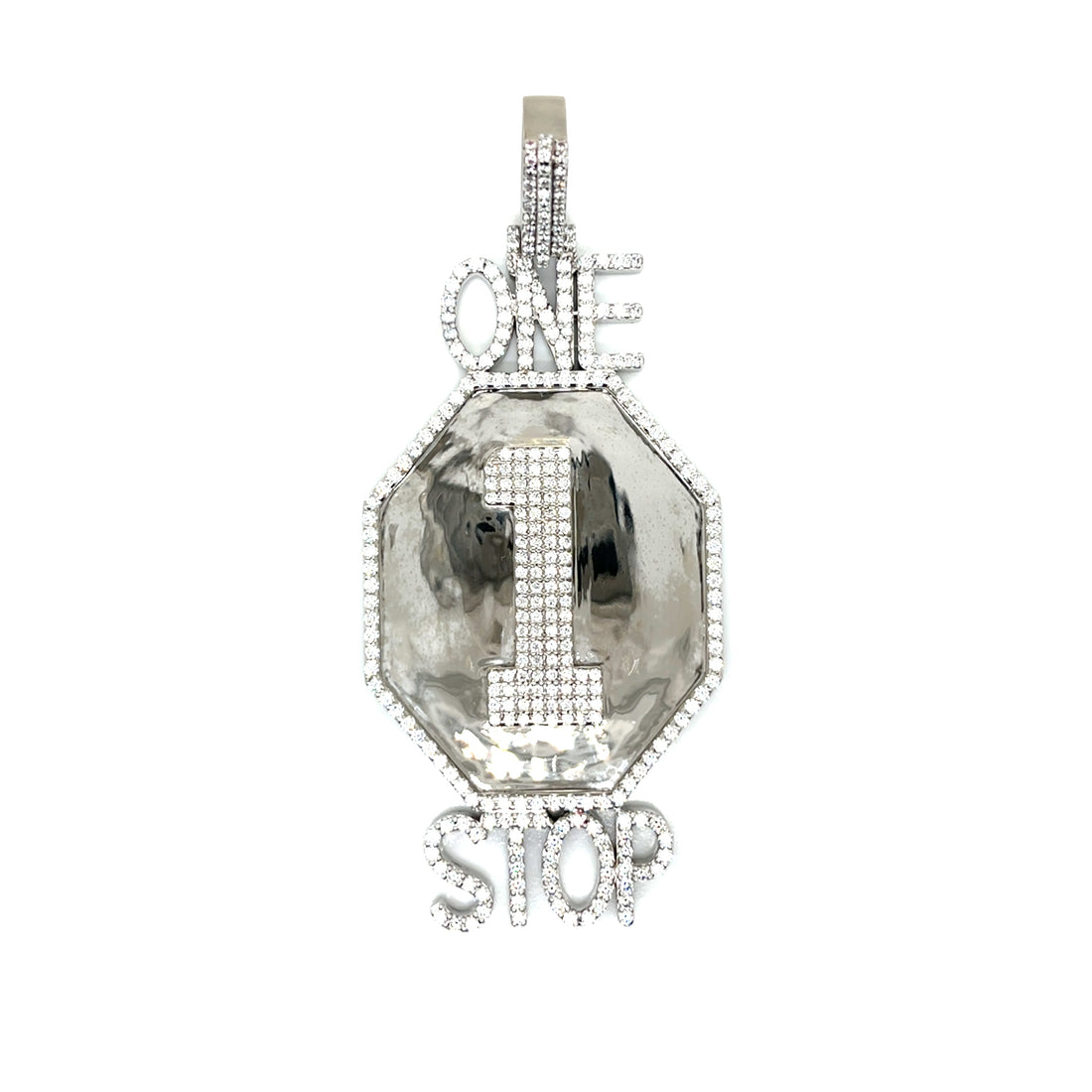 This bold custom One Stop pendant is crafted in solid sterling silver and fully covered...