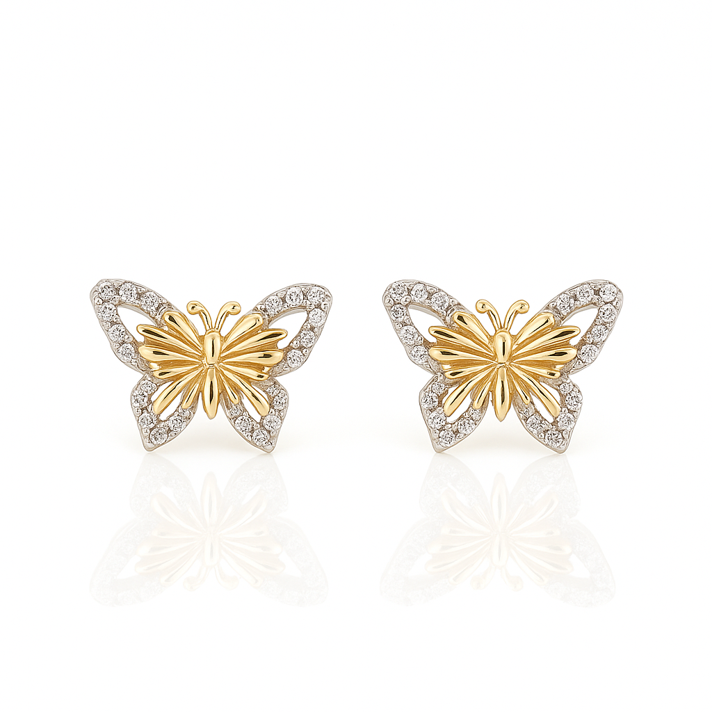 14K Gold Butterfly Earrings – CZ Studs for Women & Girls