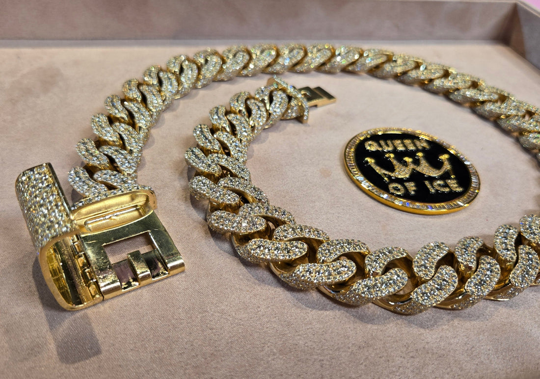 14K Gold and Diamonds Hip Hop Cuban Link Sided Bling Chain Necklace