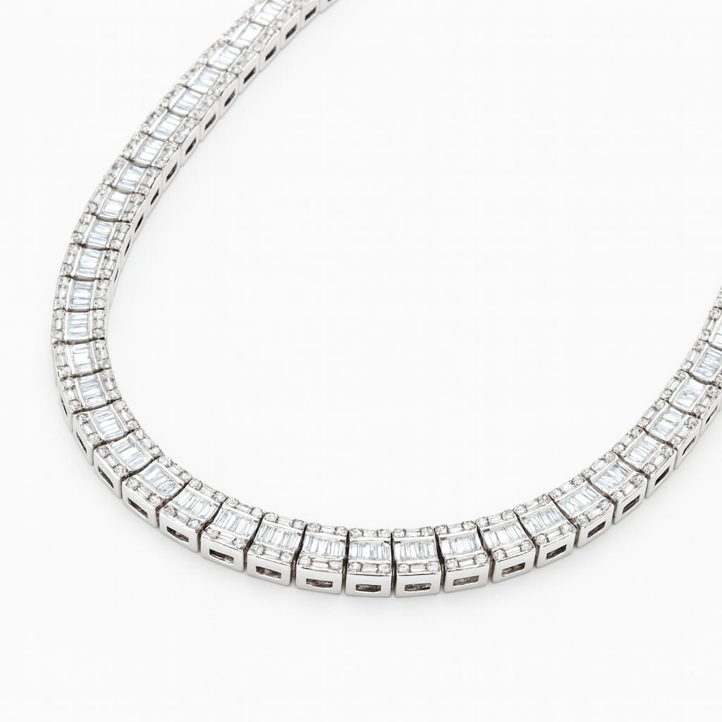 14K White Gold Tennis Round Diamonds Luxury Chain Necklace