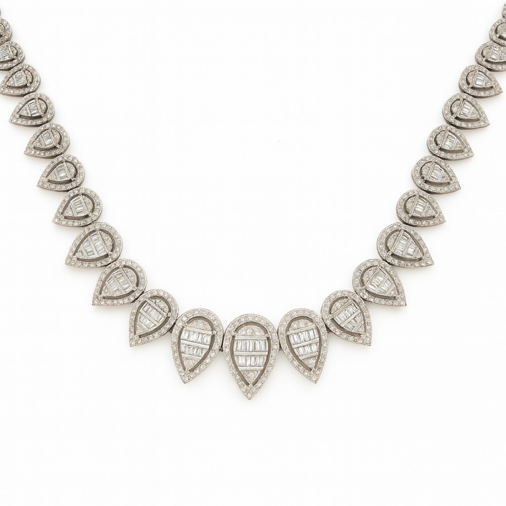 14K White Gold Fancy Elegant Diamonds Cocktail Necklace