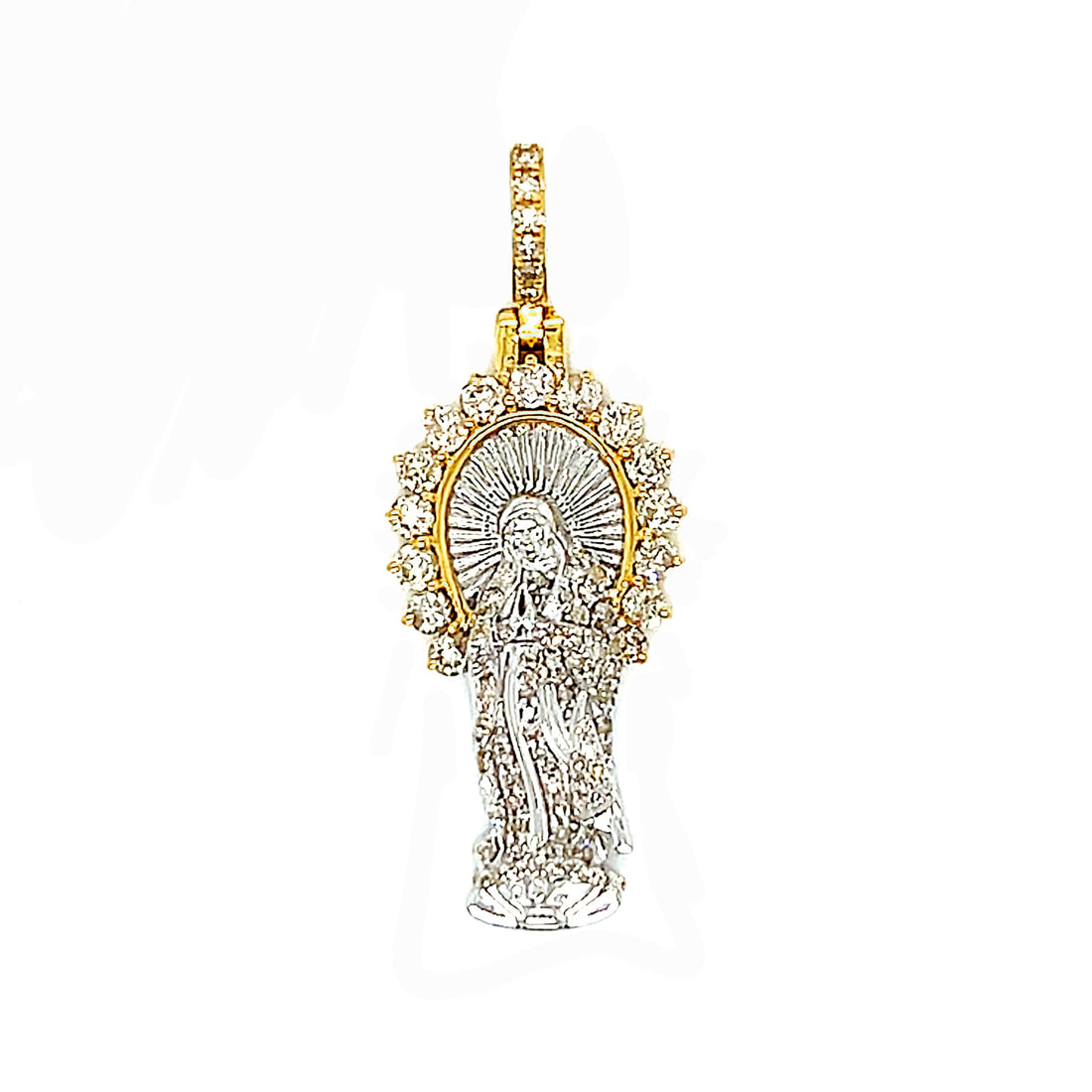 14k White Gold Virgin Mary Pendant 0.91ct of Natural Diamonds