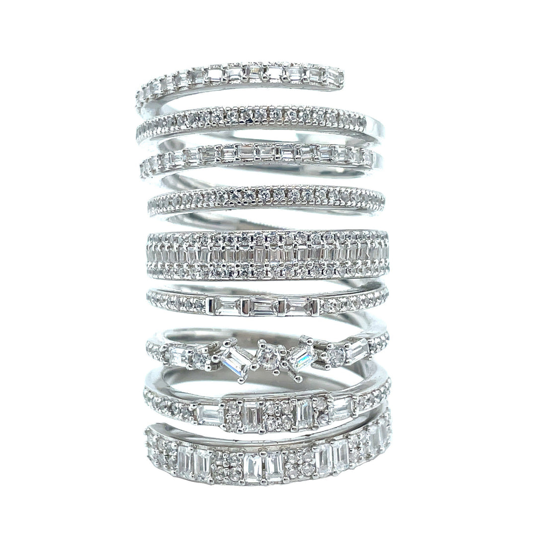 This exquisite spiral ring is crafted from 925 sterling silver, featuring an intricate design with...
