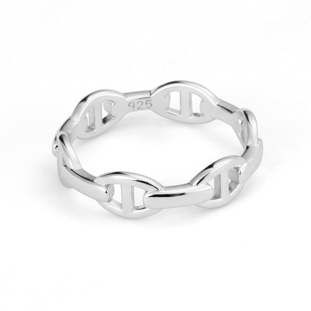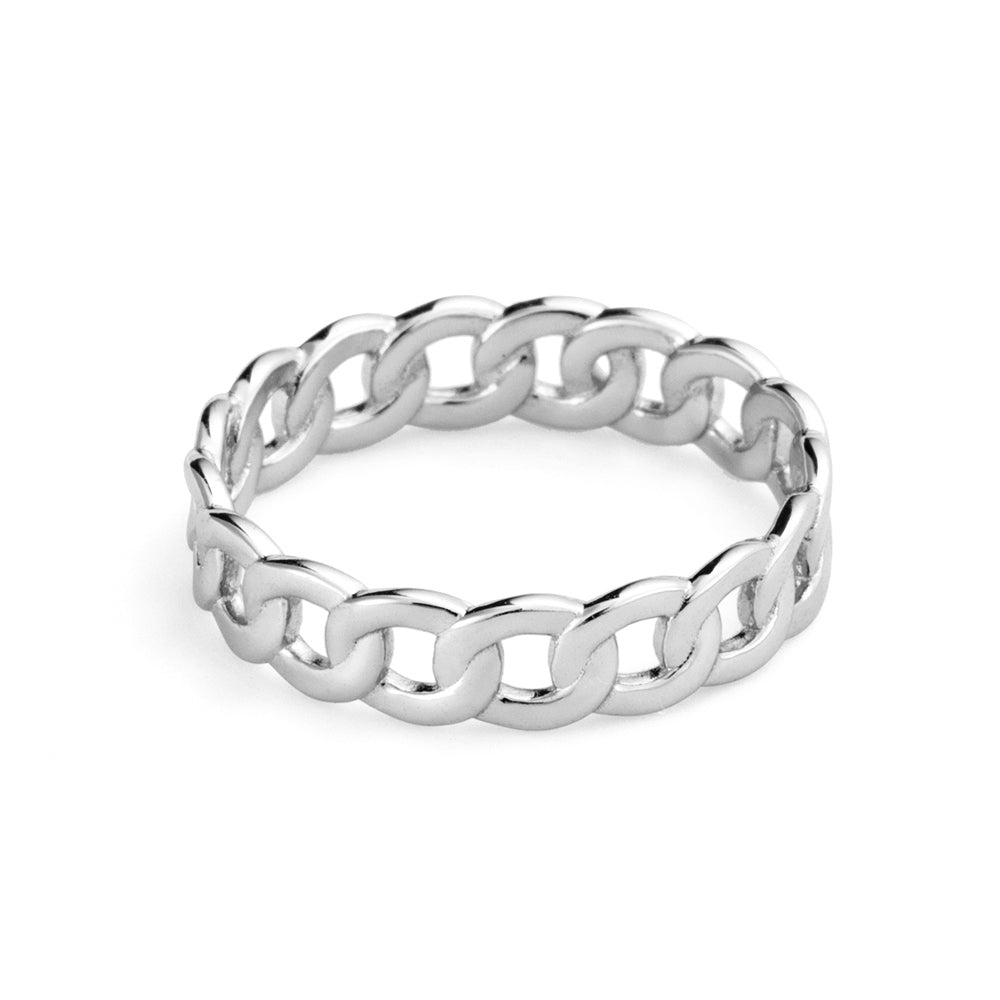 Modern open link chain ring crafted in genuine sterling silver with a smooth, high-polish finish....
