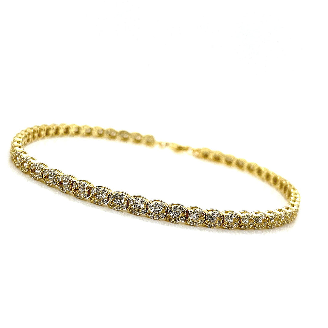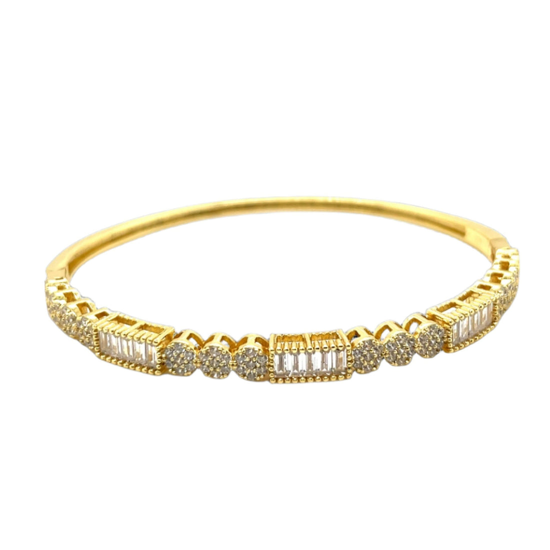 Festive Golden Ice Bangle Baguette & Round Zirconia 925 Silver