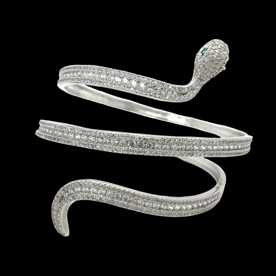 Eve Wrap Bracelet Snake Wrap Green eyes Zirconia Cocktail Bangle