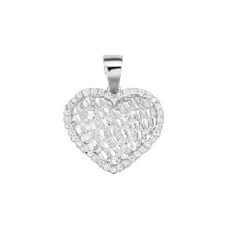 Nugget Heart Pendant with Moissanite Accents in Sterling Silver