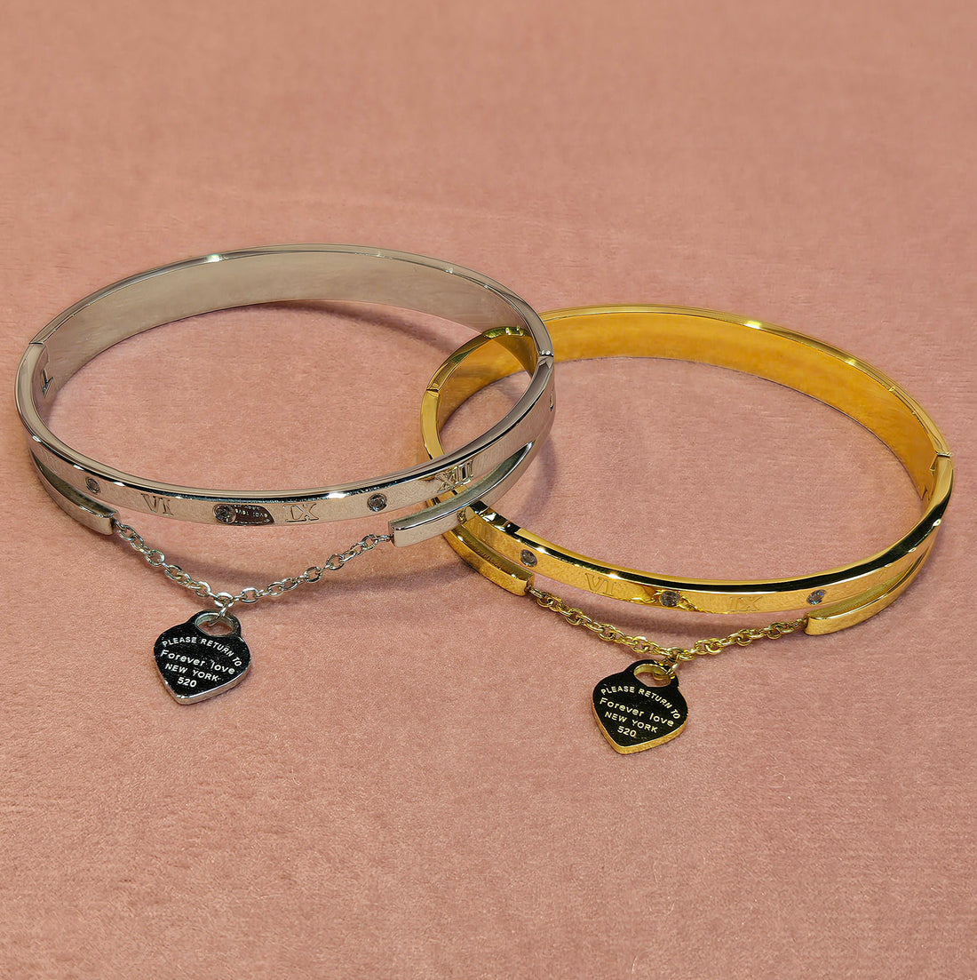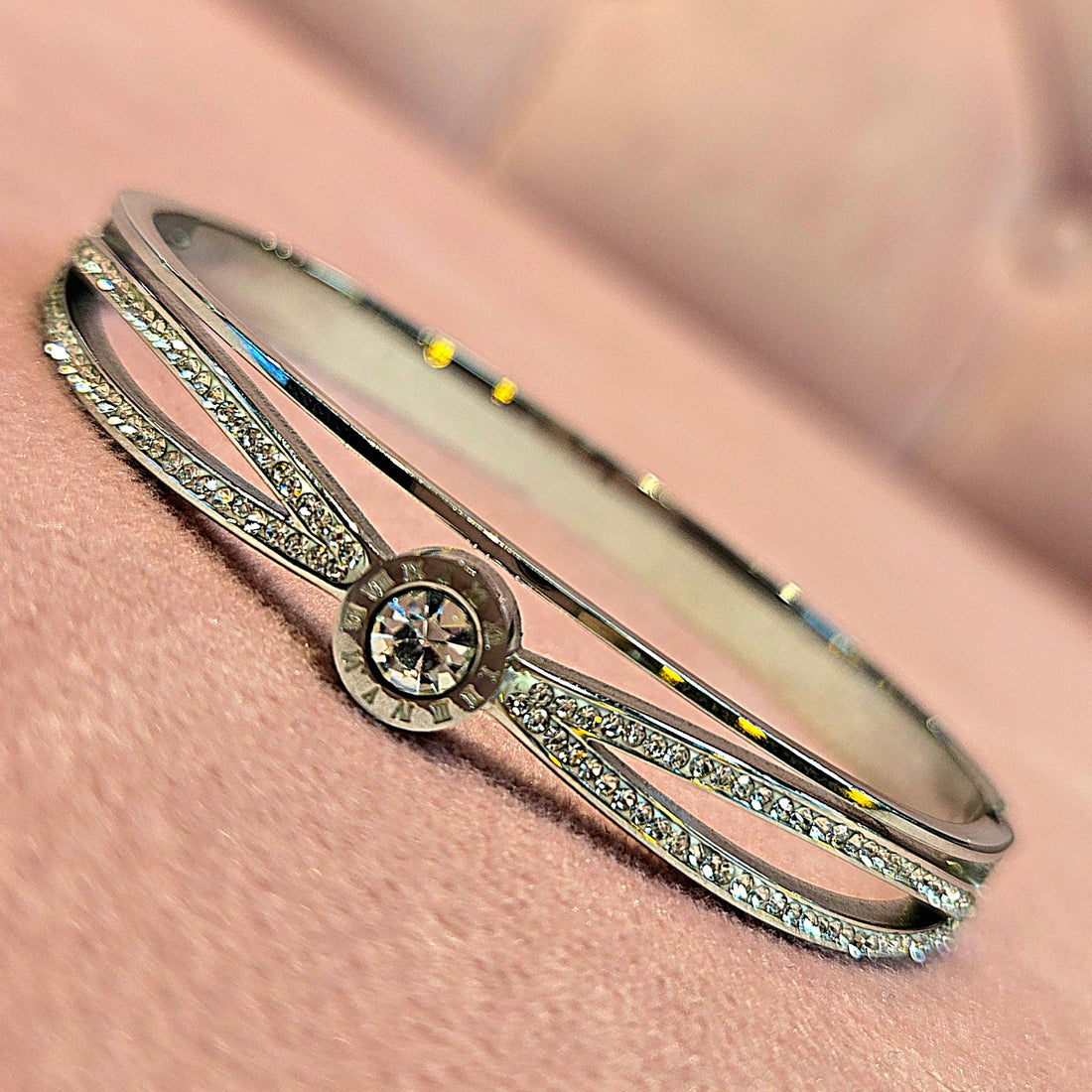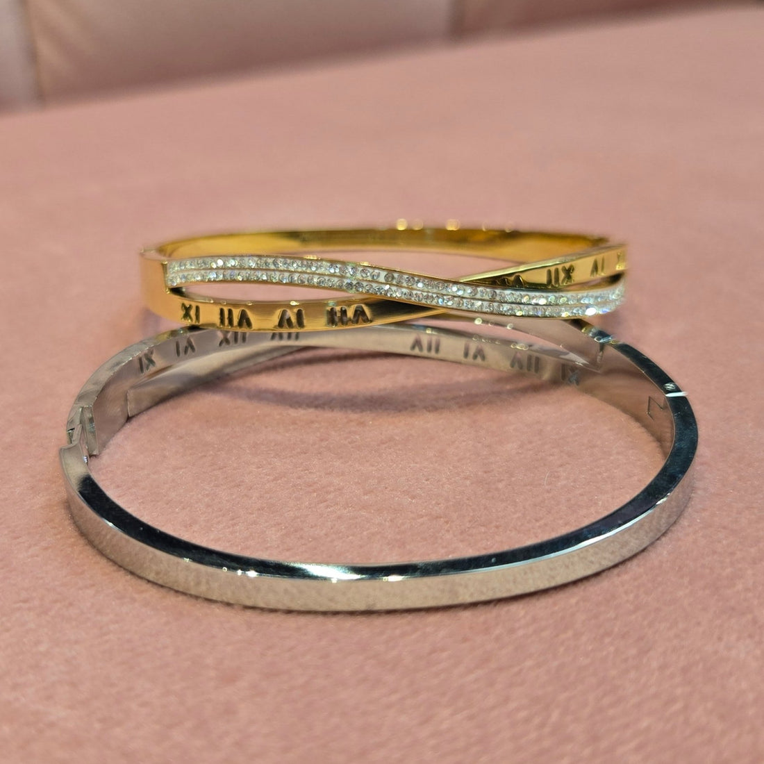 Roman Numerals Interleaved CZ Stainless Steel Bracelets Bangles
