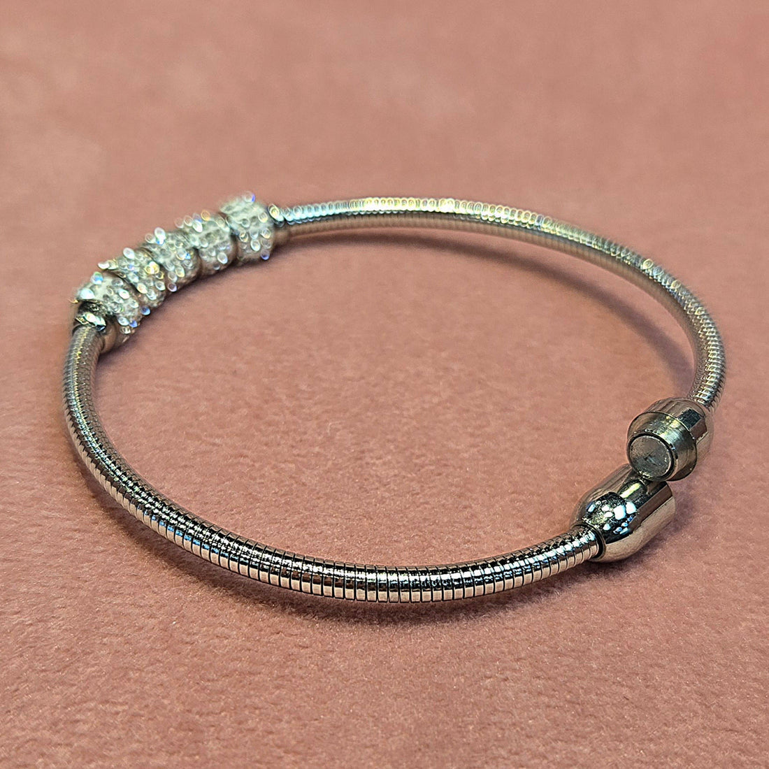 Snake Link Chain Cubic Zircon Magnetic Bead Charm Bangle Bracelet