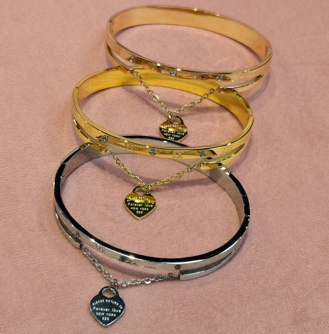 Fashion Jewelry Electroplated Steel, 18k Gold and 18k Tose-Gold Plated Cubic Zirconia High Quality Top Seller Ladies Mens Unisex Designs Bracelets Brangles.