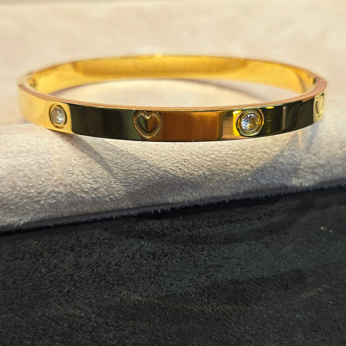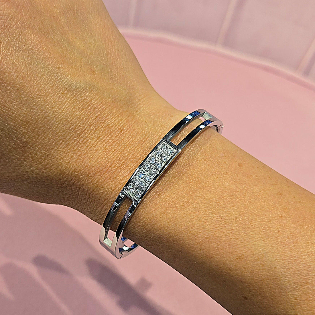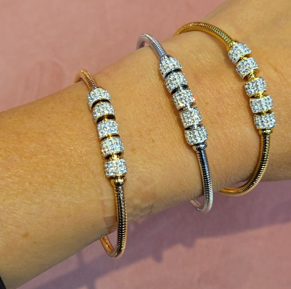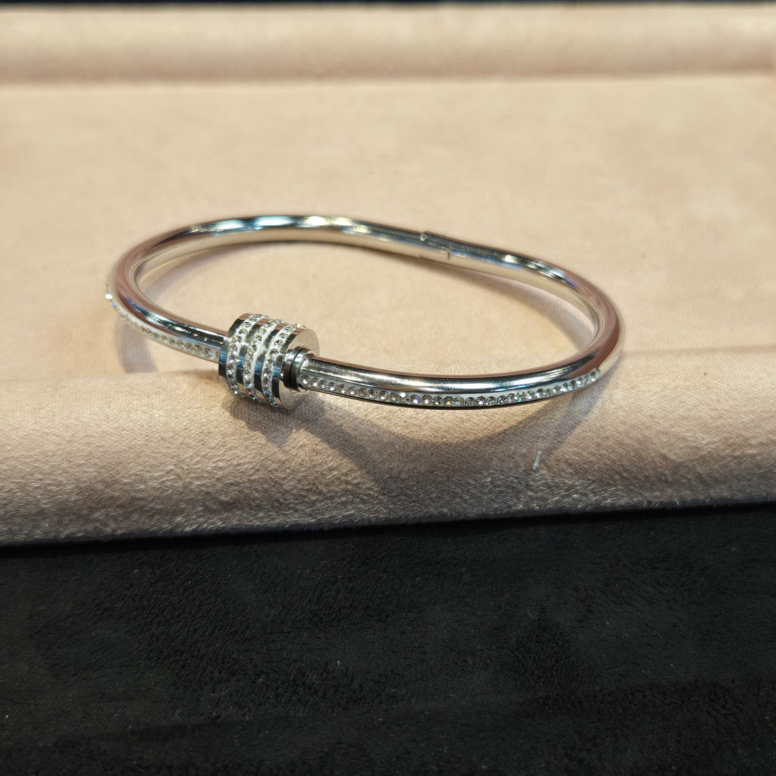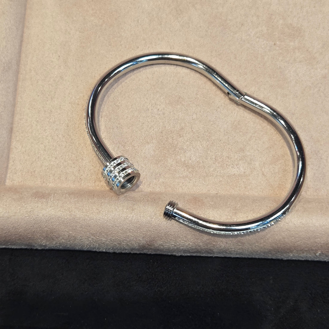 Elevate your accessory game with our sleek Steel Never Tarnish Screw Clear Cubic Zirconia Bangles...