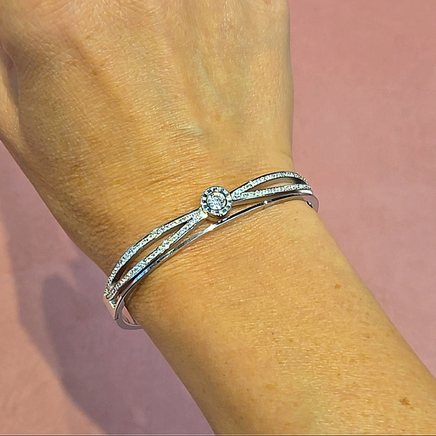 Screw Steel Never Tarnish Clear Cubic Zirconia Bangles Bracelets