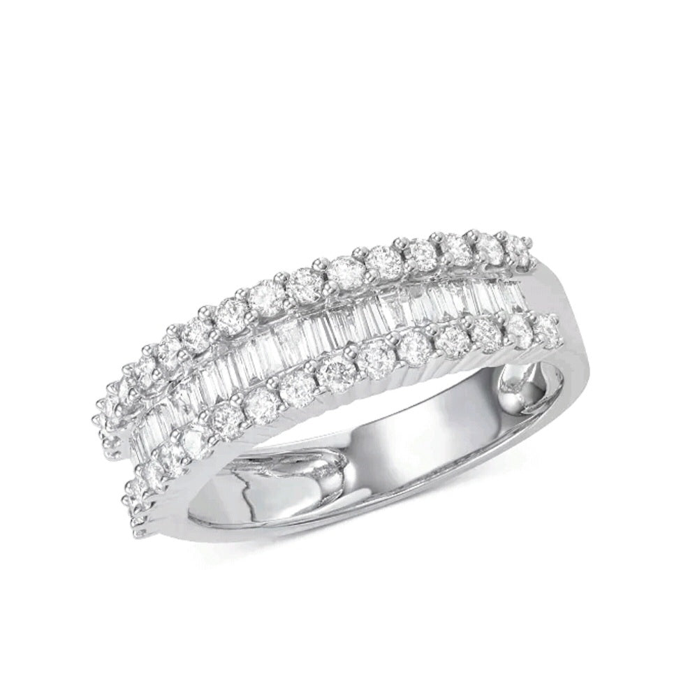 14K White Gold Baguette Cut & Round Natural Diamonds Band RING