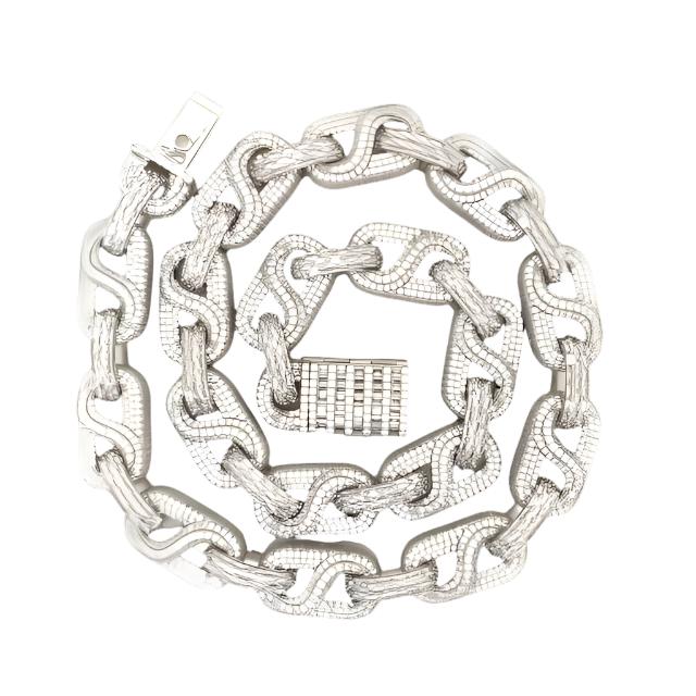 Cadenas chapadas en plata de ley 925 rodiada/oro amarillo y rosa de 14 quilates con piedras de circonita redondas y baguette. Enlace único creado por Sara Jewelry.