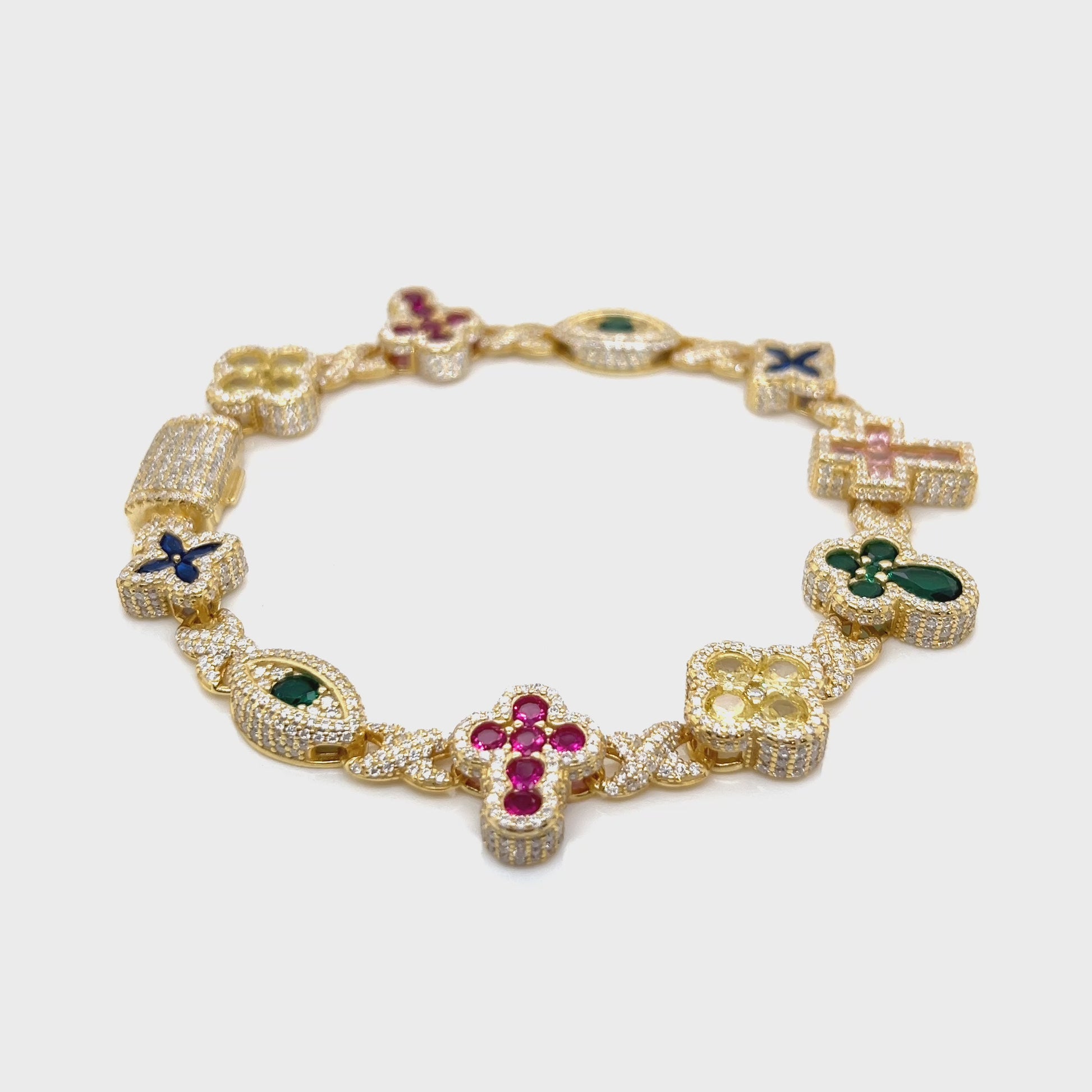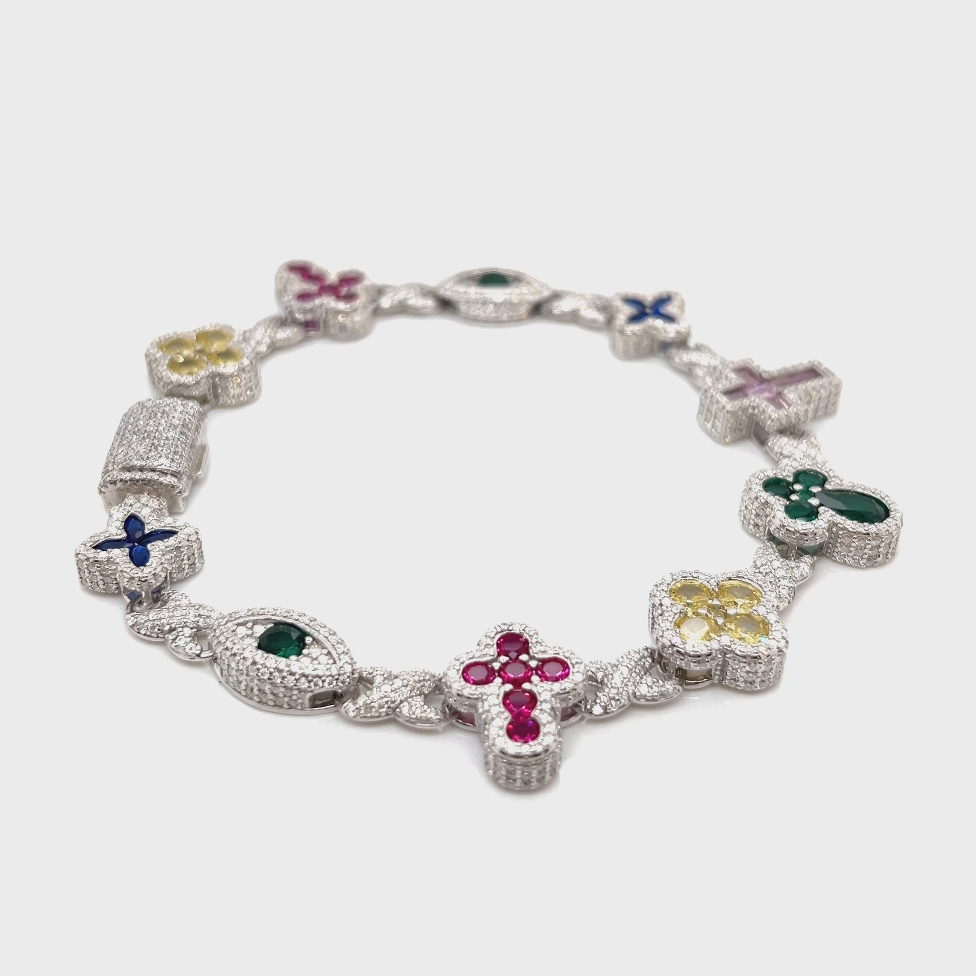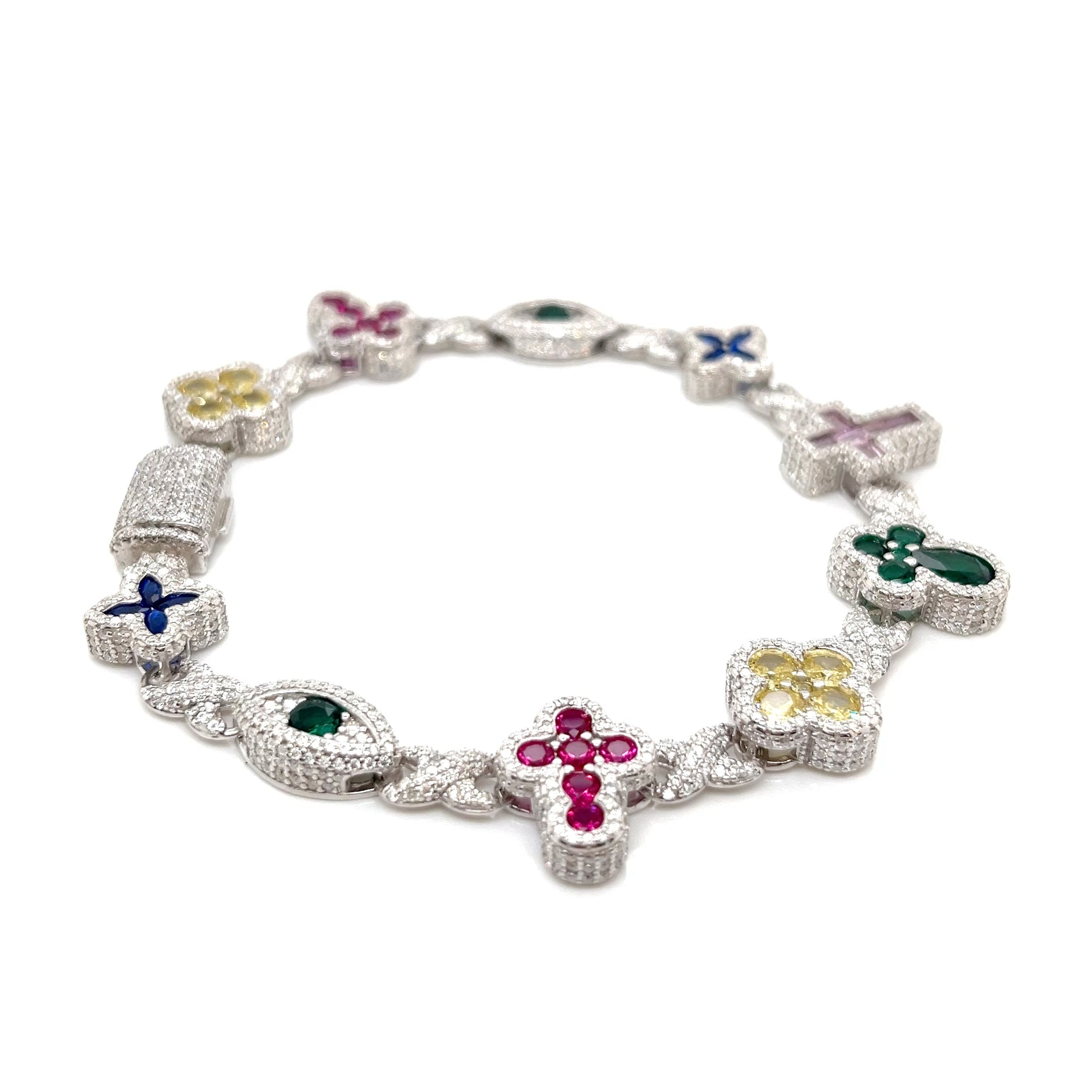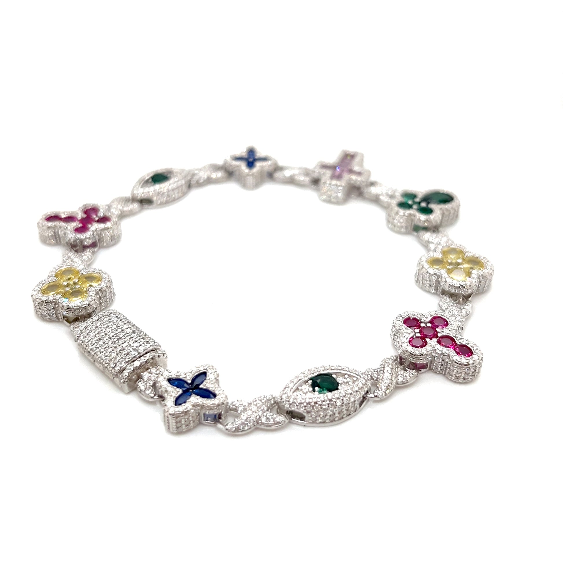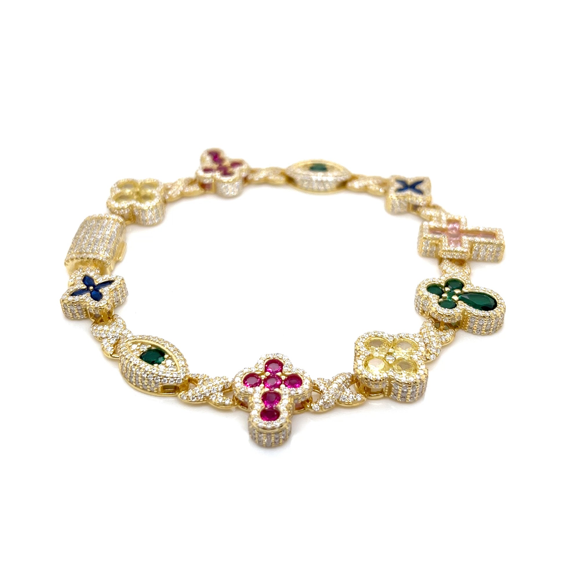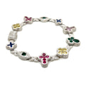 Sterling Silver Multi-Color Cross & Symbol Moissanite Bracelet – Gold & Silver Options