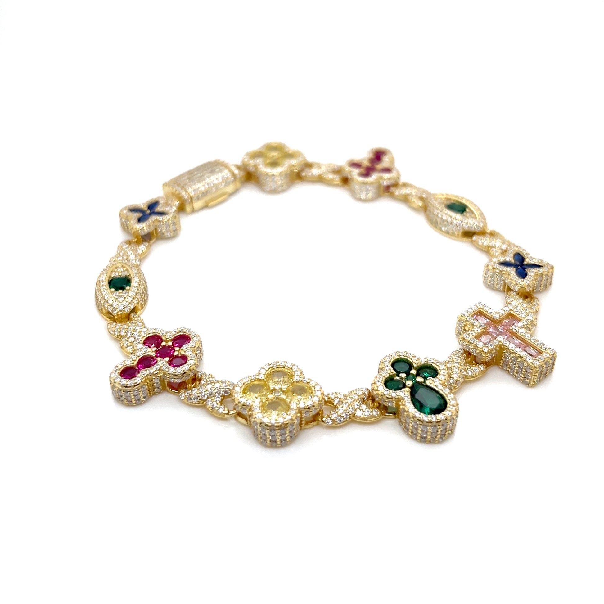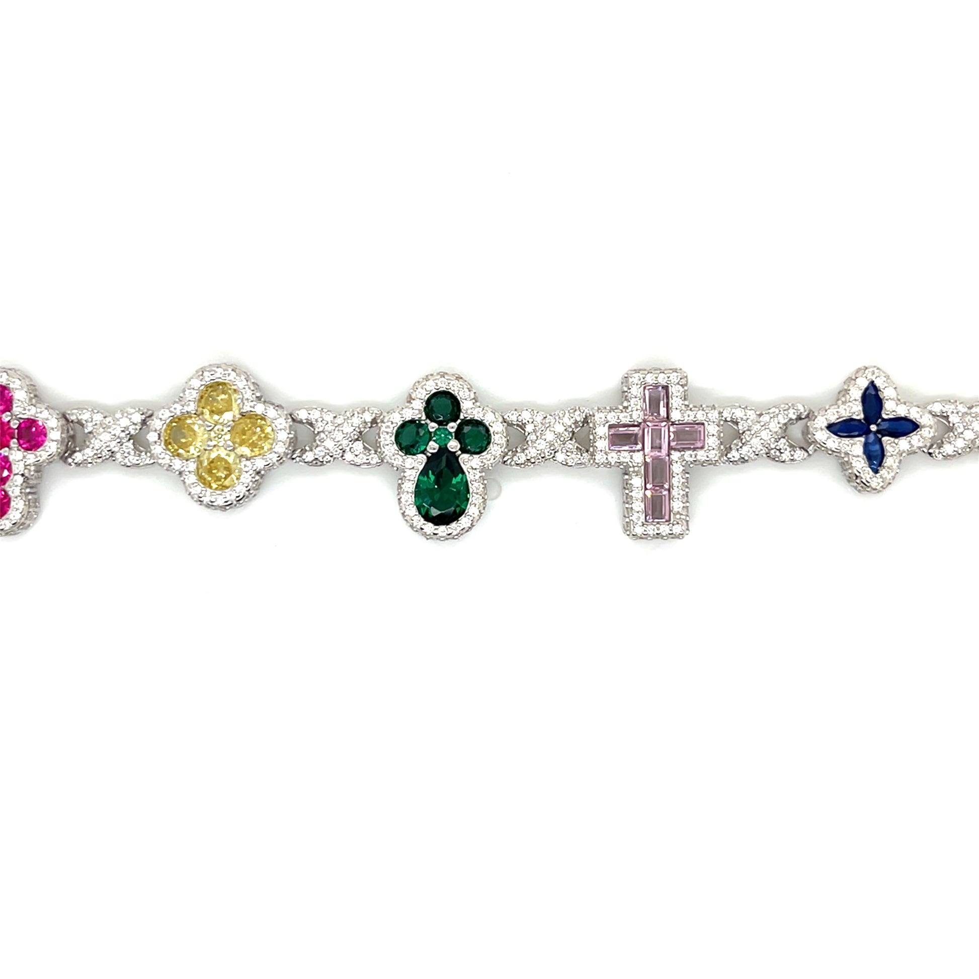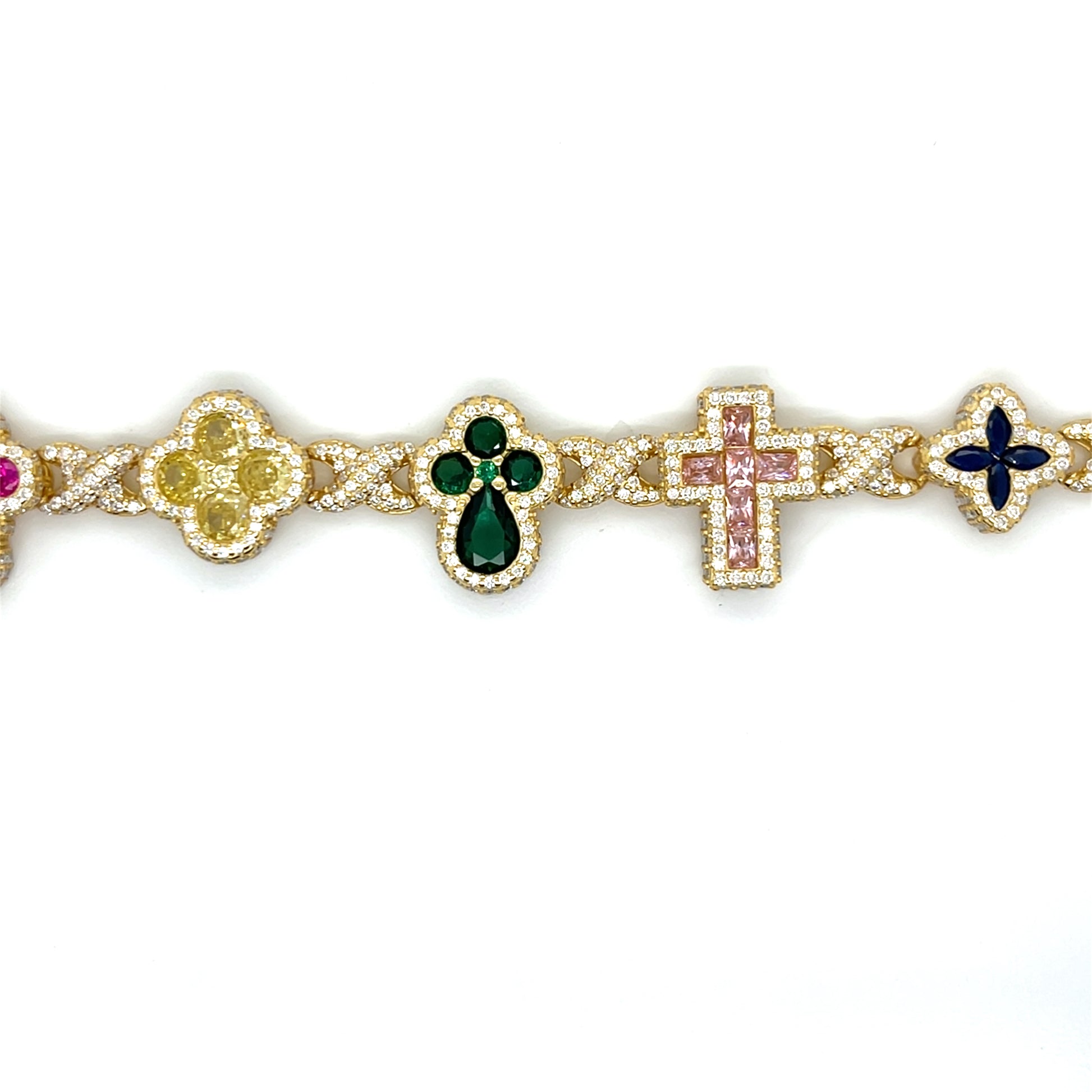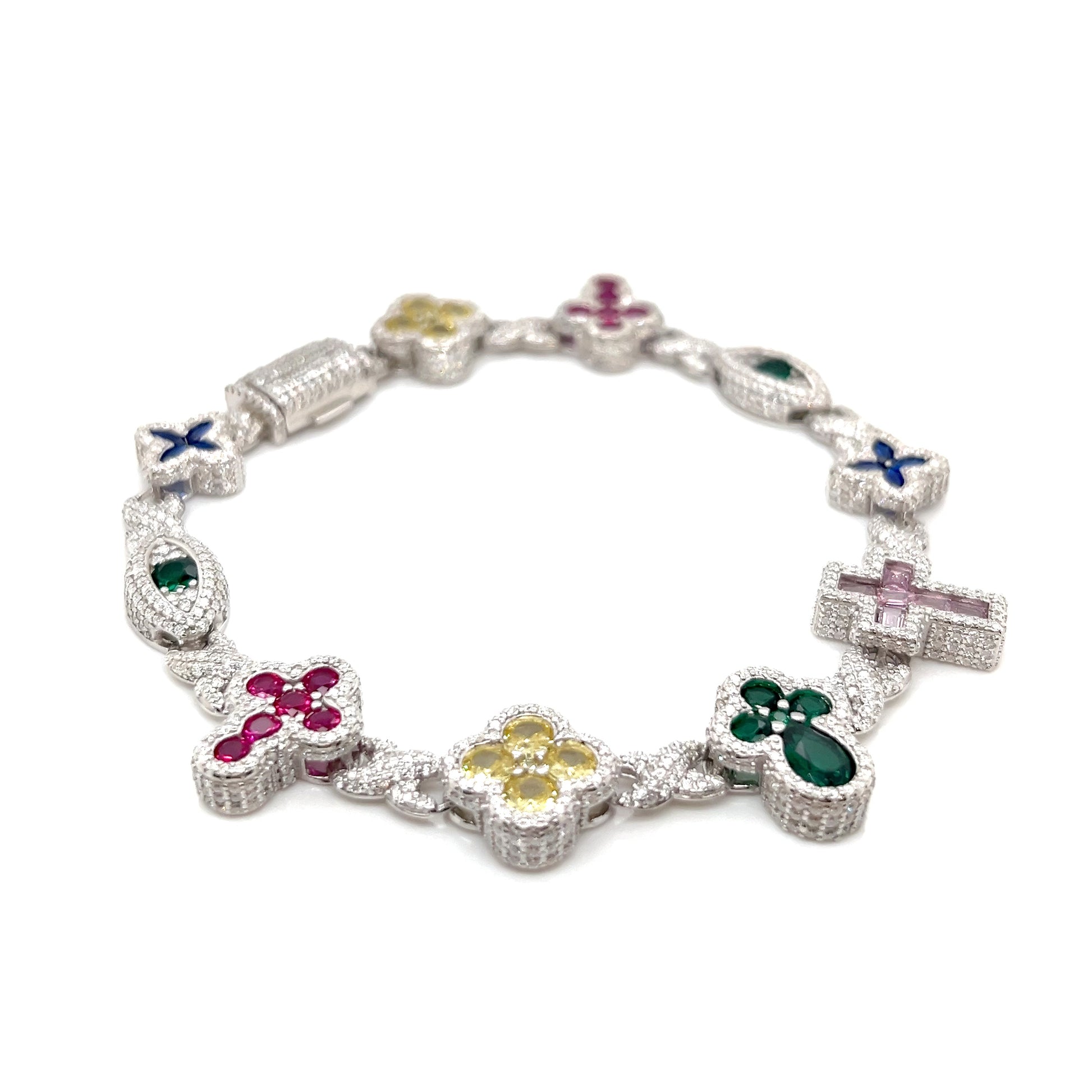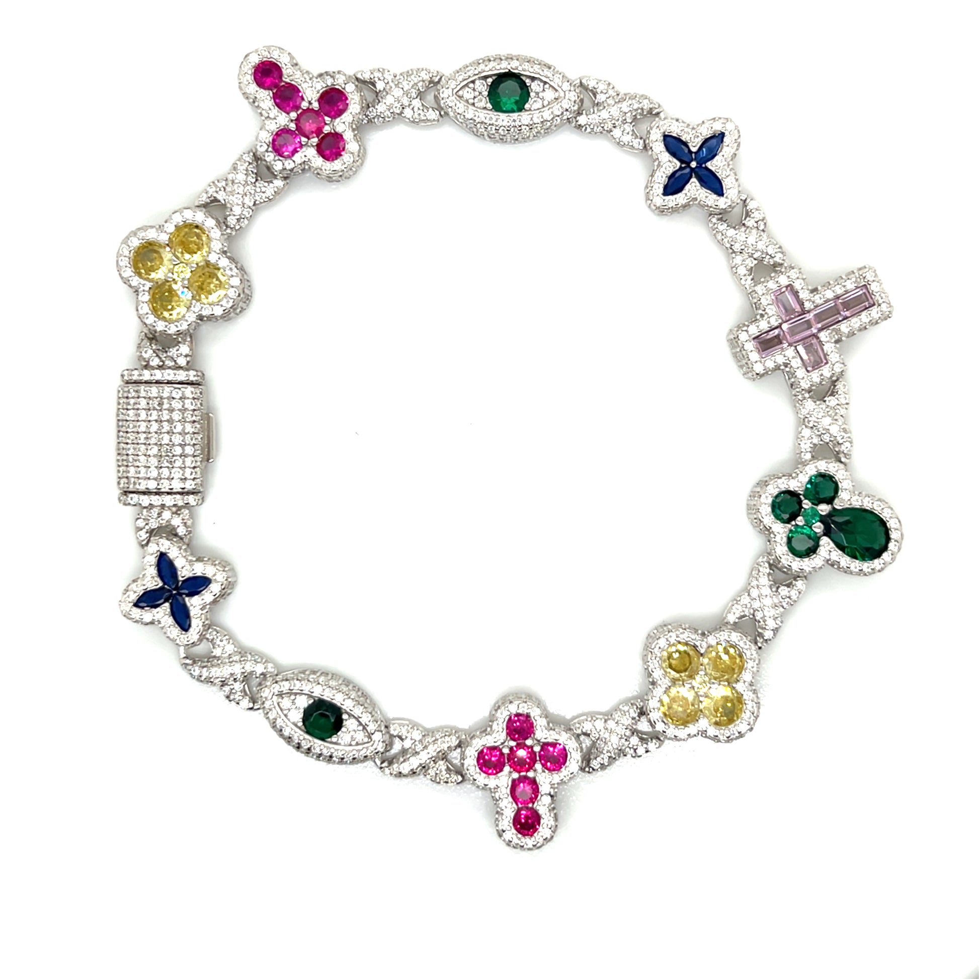 Sterling Silver Multi-Color Cross & Symbol Moissanite Bracelet – Gold & Silver Options