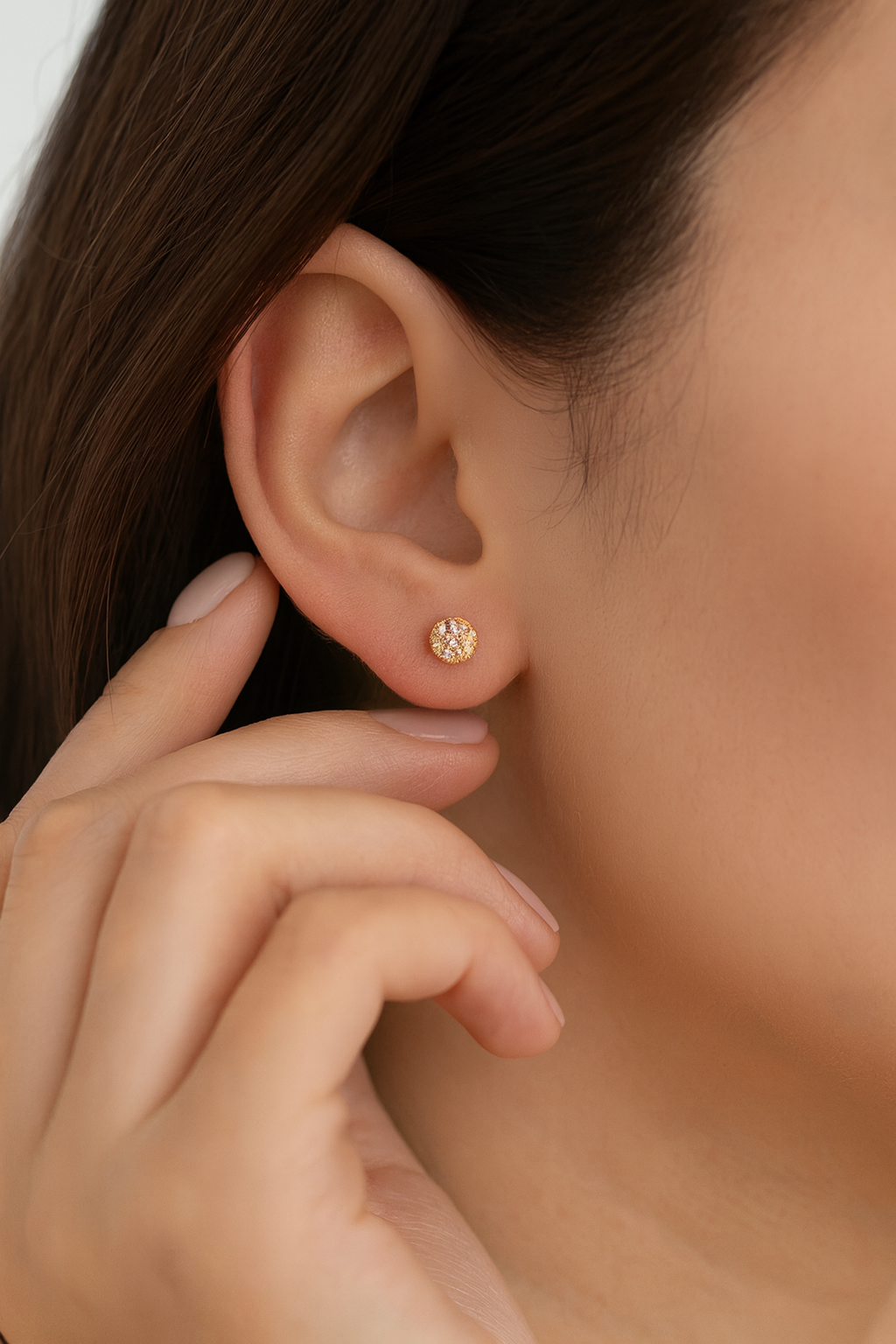 A refined take on everyday luxury, these 10K gold pavé diamond stud earrings feature a shimmering sphere design set with 0.14 carats of round diamonds. Compact yet radiant, their pavé setting maximizes sparkle, making them the perfect balance of subtle elegance and luminous shine. Designed with secure screw-back posts for comfort and wearability.