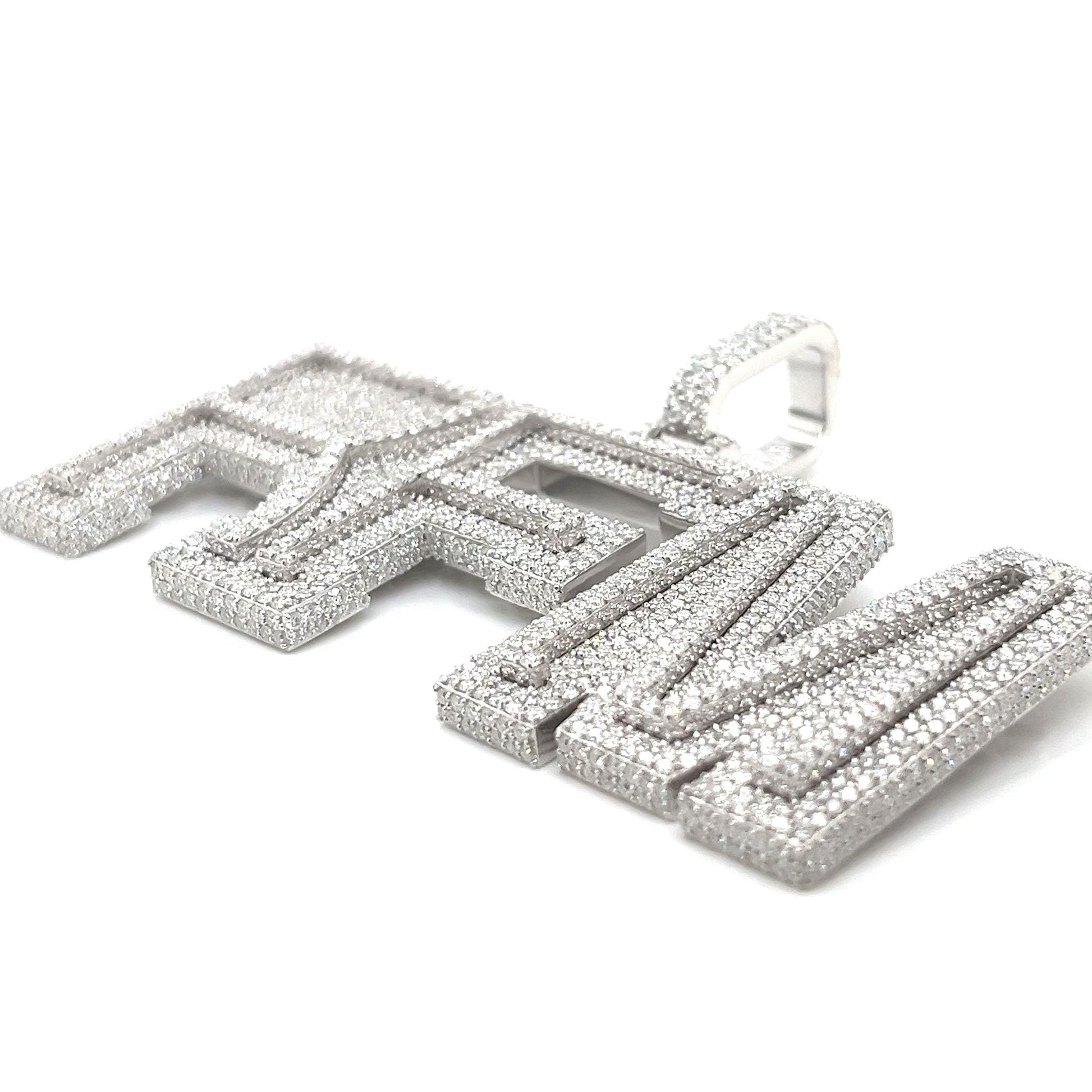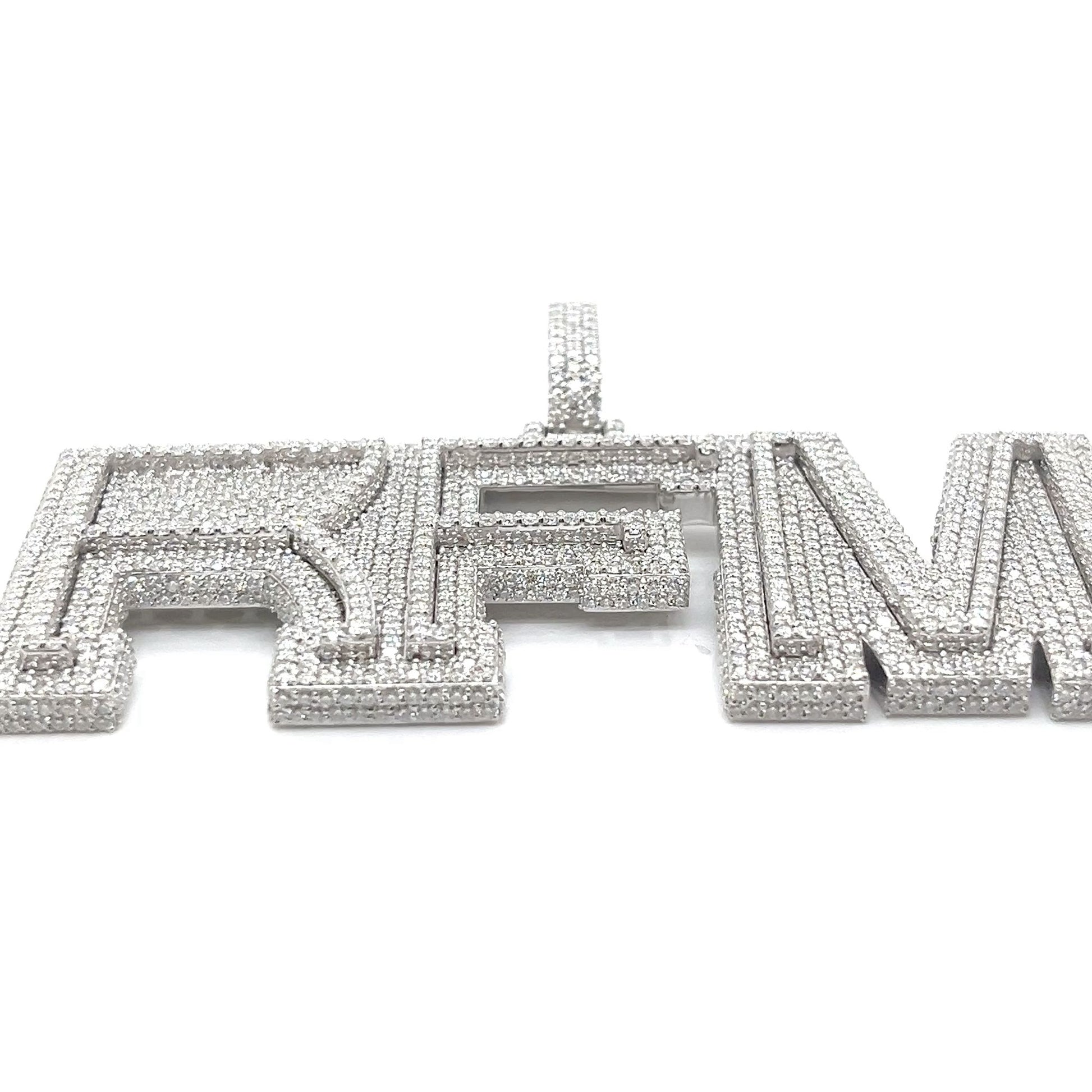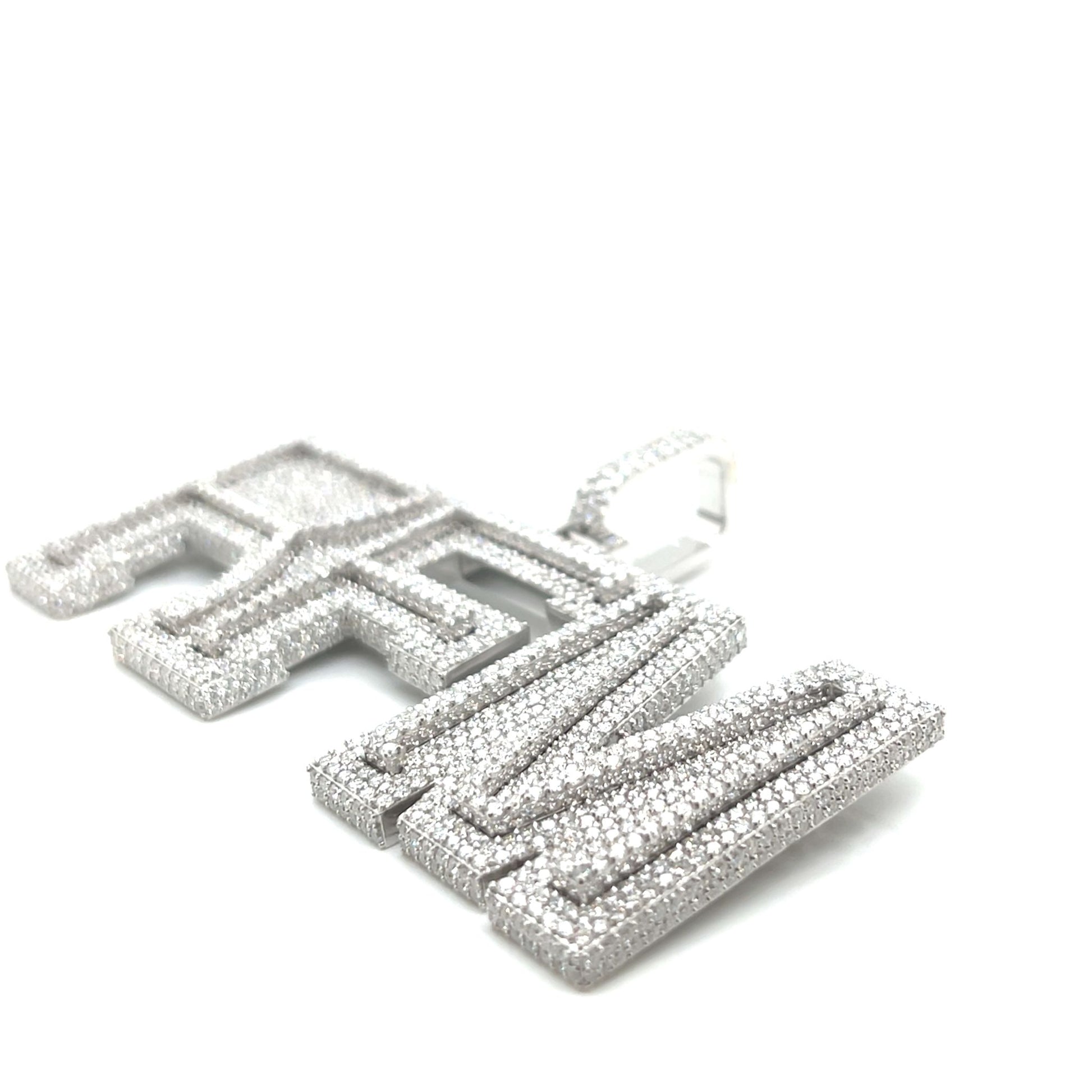 Make a bold statement with our Custom RFM Pendant, expertly crafted in high-quality sterling silver and set with dazzling lab-created moissanite stones. Designed for shine and built to last, this piece offers the brilliance of diamonds at a fraction of the cost.
