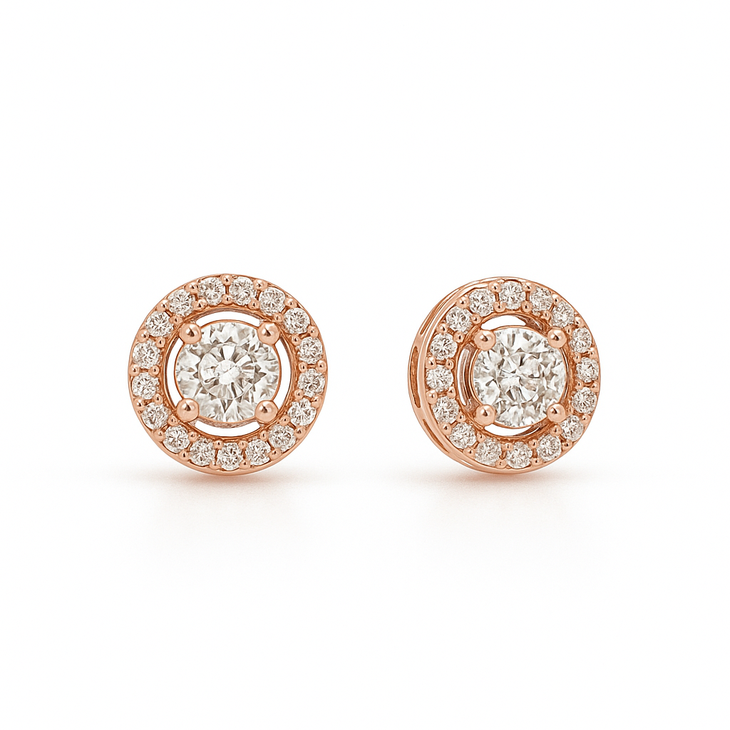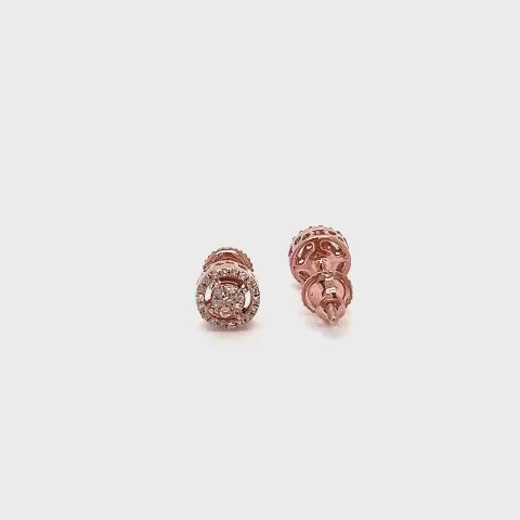 These elegant stud earrings are available in 10K rose gold or 10K yellow gold, each set with a .15ct diamond halo cluster for a radiant sparkle. The classic halo design enhances brilliance while maintaining a timeless, versatile look. Finished with secure screw-back posts for comfort and durability.