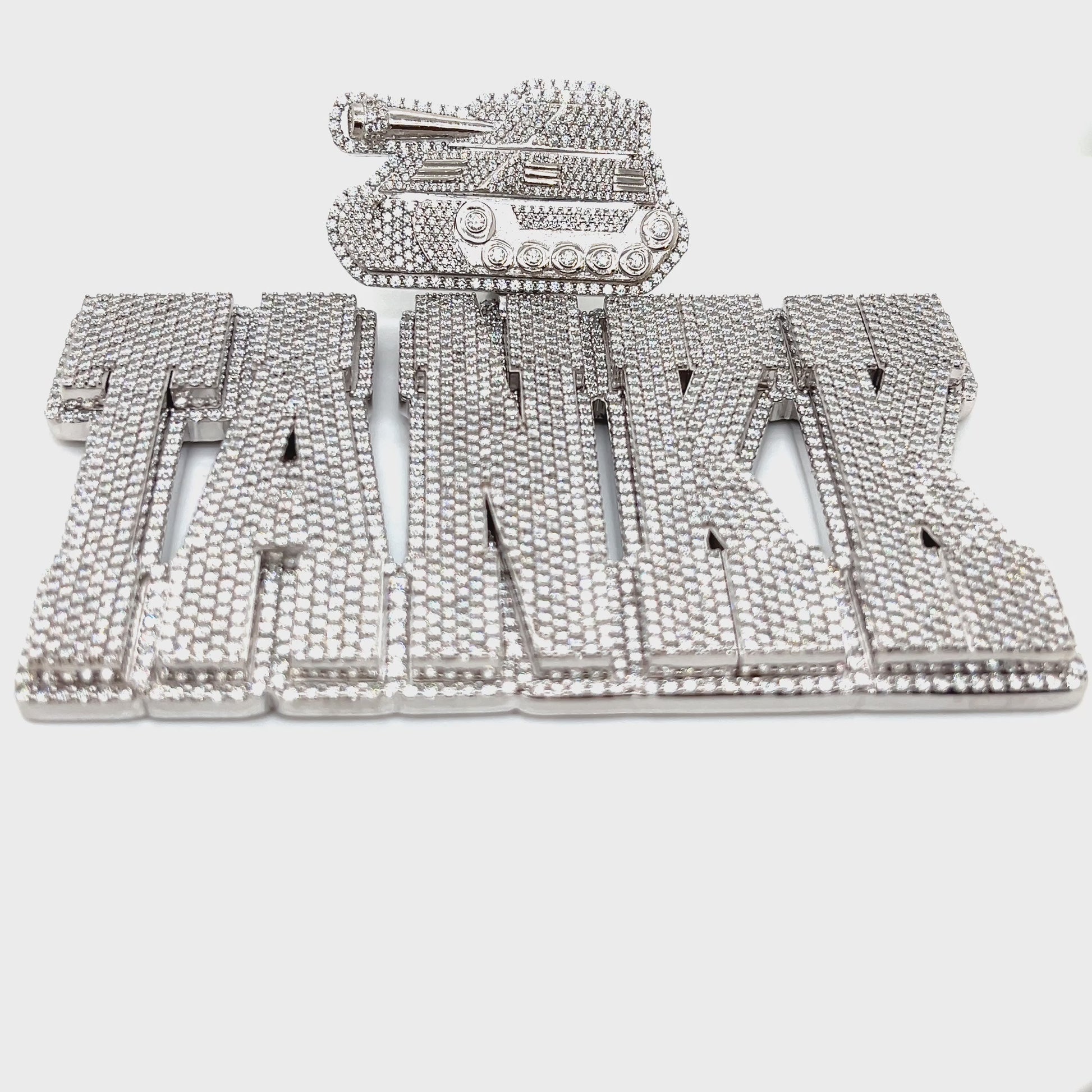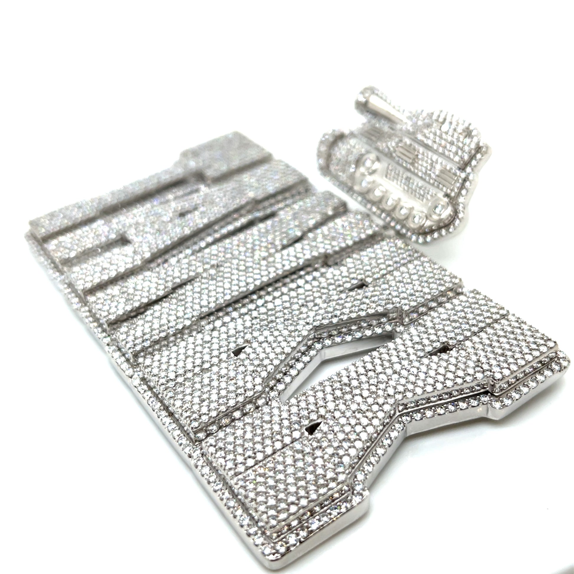 Custom Silver TANK Pendant with Lab-Created Moissanite Stones