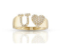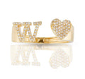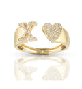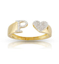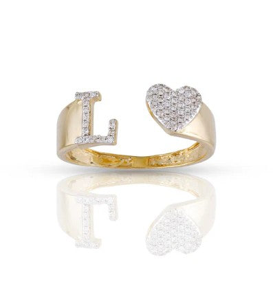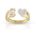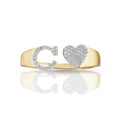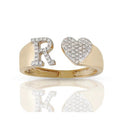 10k Gold White Diamond Heart Initial Letter Stylish Ring