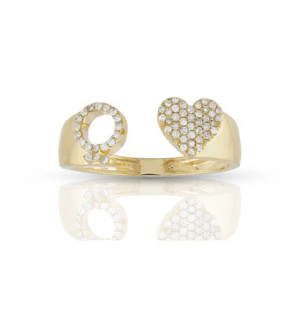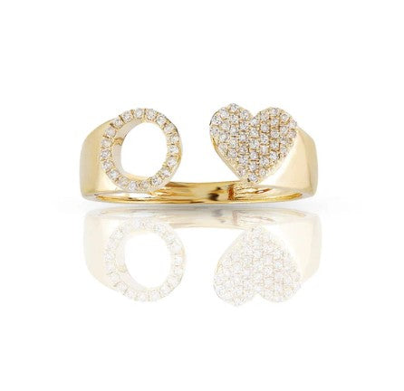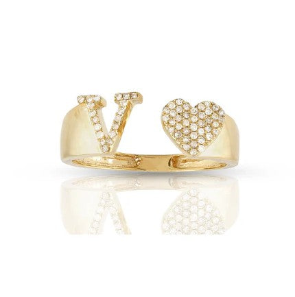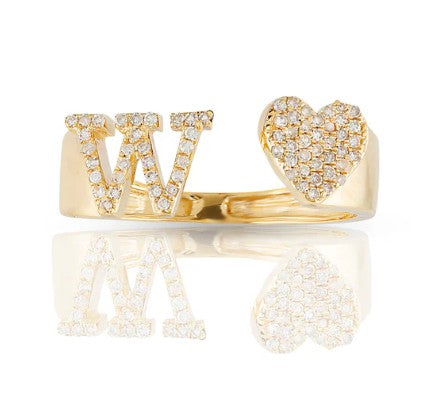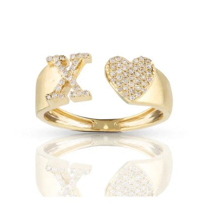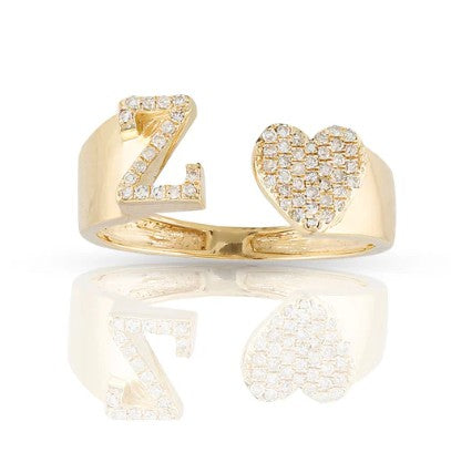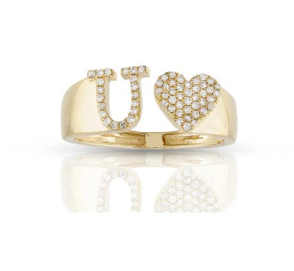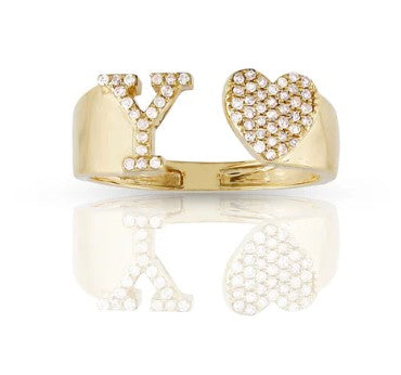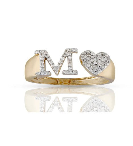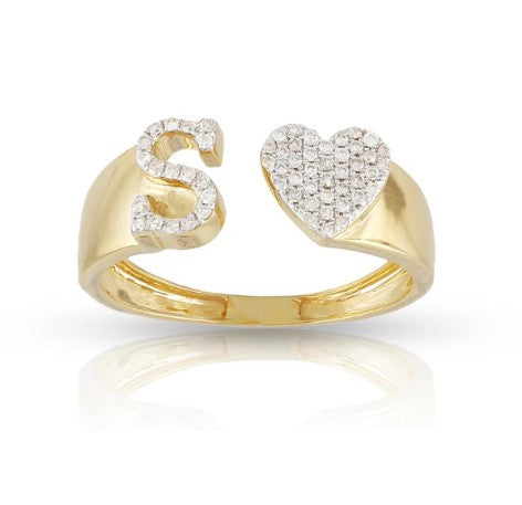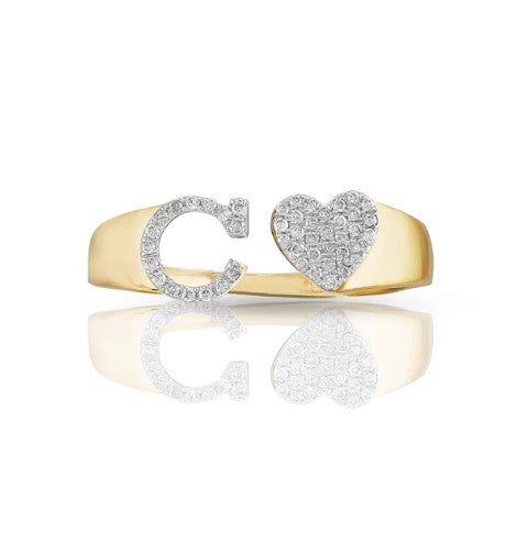 This 10k yellow gold ring features a heart-shaped initial with sparkling natural diamonds. Brighten your style with its fun, elegant shine. Perfect for showing off your personality or gifting someone special. Wear it alone or with other rings for a playful, stylish touch.