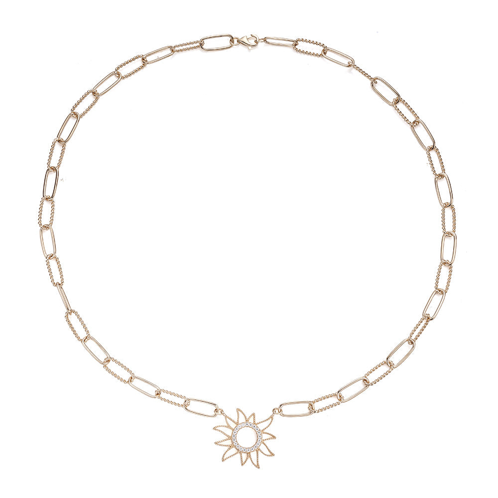 Stunning Sterling Silver Sun Paperclip Lab-Created Moissanite Necklace
