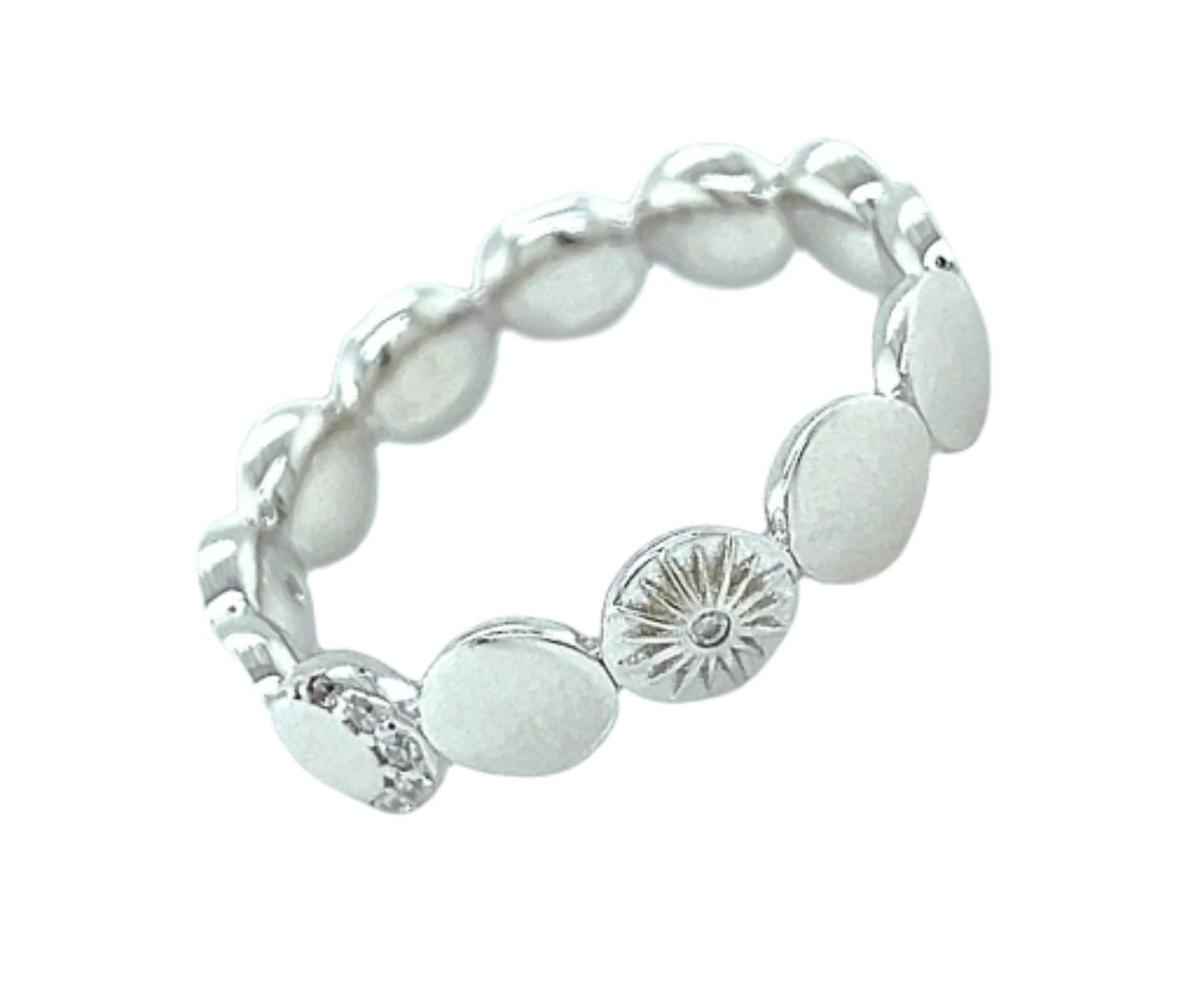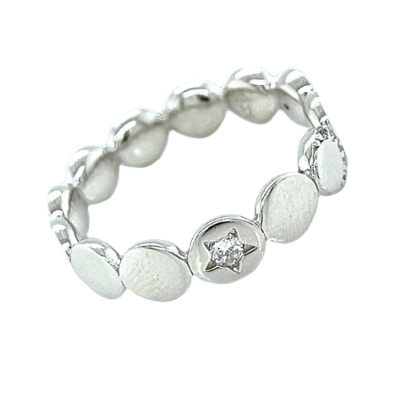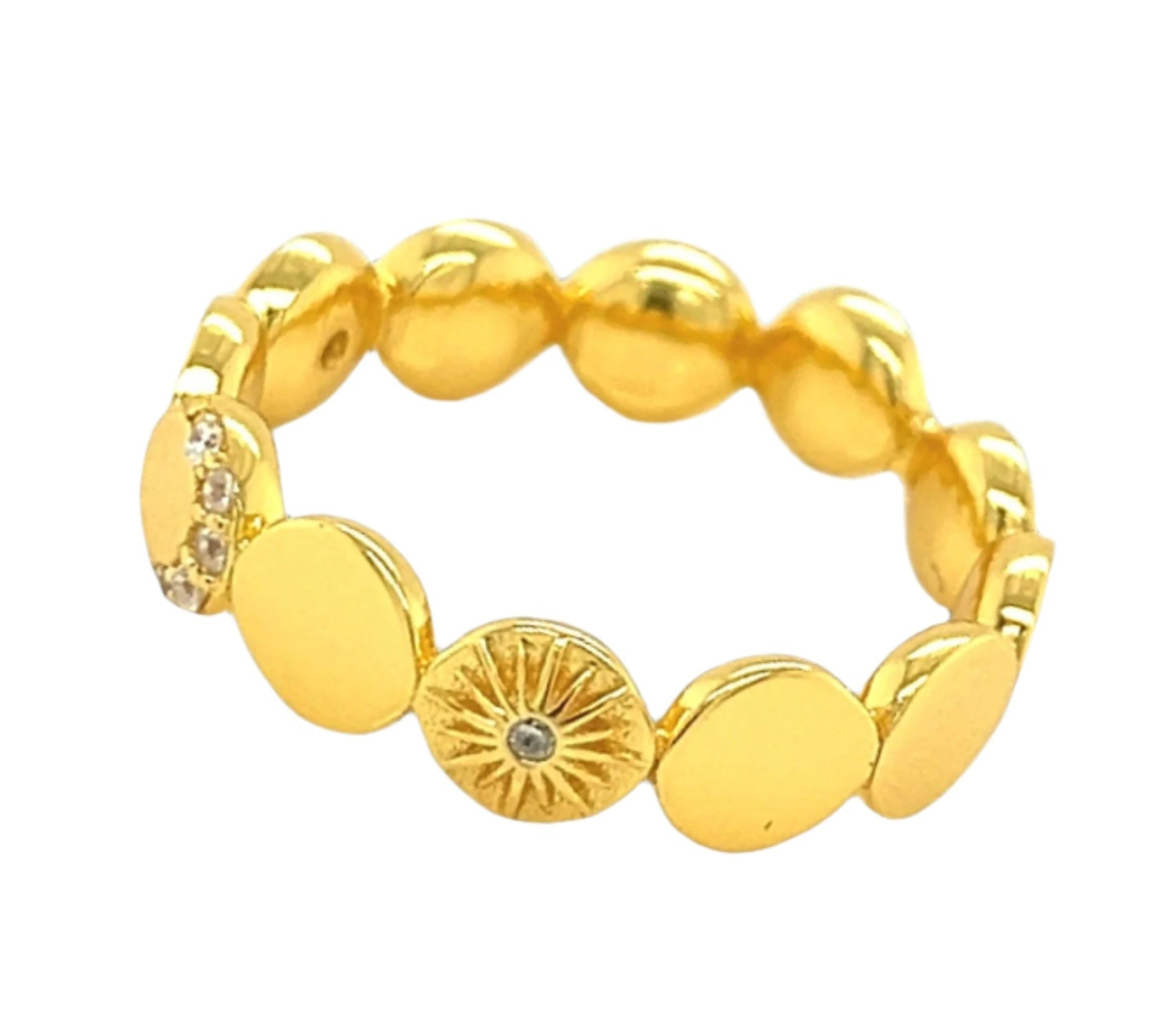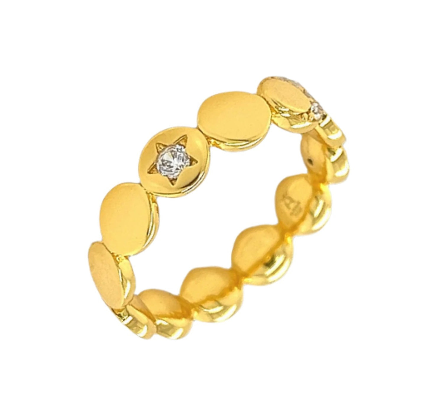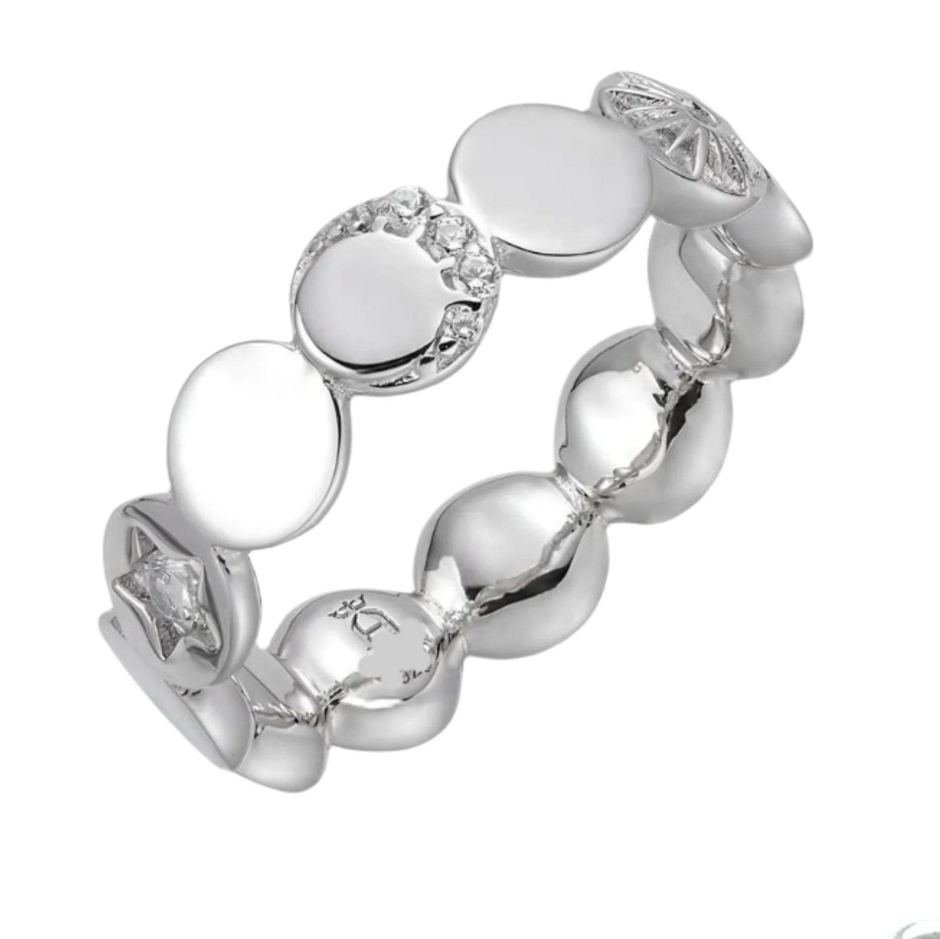 Mejora tu moda con esta pieza clásica. Este impresionante anillo de sol, estrella y luna de oro de 14 quilates presenta oro de 14 quilates de alta calidad y aproximadamente 0,06 quilates de piedras redondas de MOISSANITA, elevando instantáneamente cualquier atuendo con un toque de sofisticación.