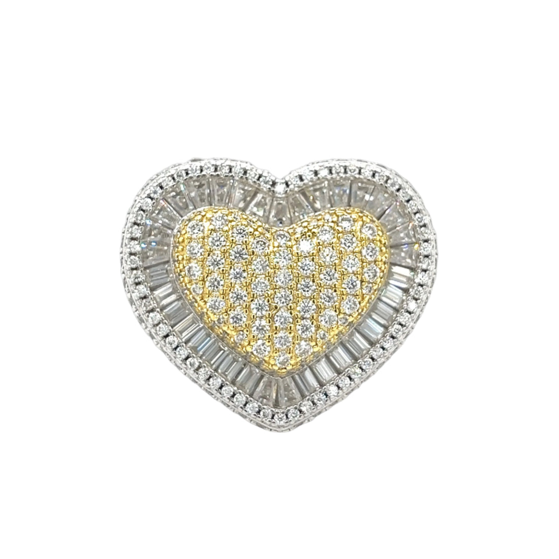 חבק אלגנטיות עם הטבעת שלנו בצורת לב 925 כסף סטרלינג. כסף לבן ולבן זהב צהוב...