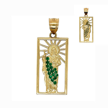 זהב 14 קראט תליון סן ג'ודס יפהפה עם ירוק CZ