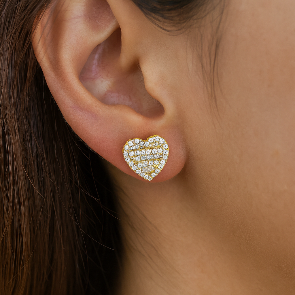 These charming 14K yellow gold earrings sparkle with a mix of baguette and round diamonds in a lovely heart shape. With their secure screw back closures, they’re comfy enough for all-day wear. Perfect for stacking or gifting, these iced-out hearts add a playful yet luxurious touch to any look. Show off your shine and wear your heart on your ears every day!