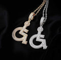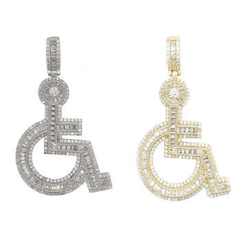 Iced Out Cubic Zirconia Wheelchair Pendent Charm - C4219169