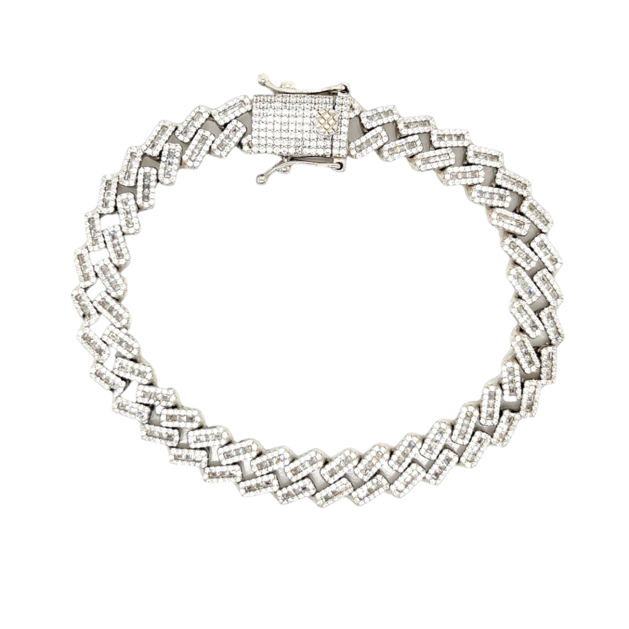 צמיד מדהים כסף סטרלינג 925 רודיום CZ 10MM: הרם את הסגנון שלך עם היופי הנצחי הזה. כולל צמיד מסנוור בגודל 8.5 אינץ' עם אבני זירקוניה (CZ) עגולות ובגט, הוא מוסיף נופך של זוהר לכל מראה.