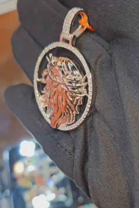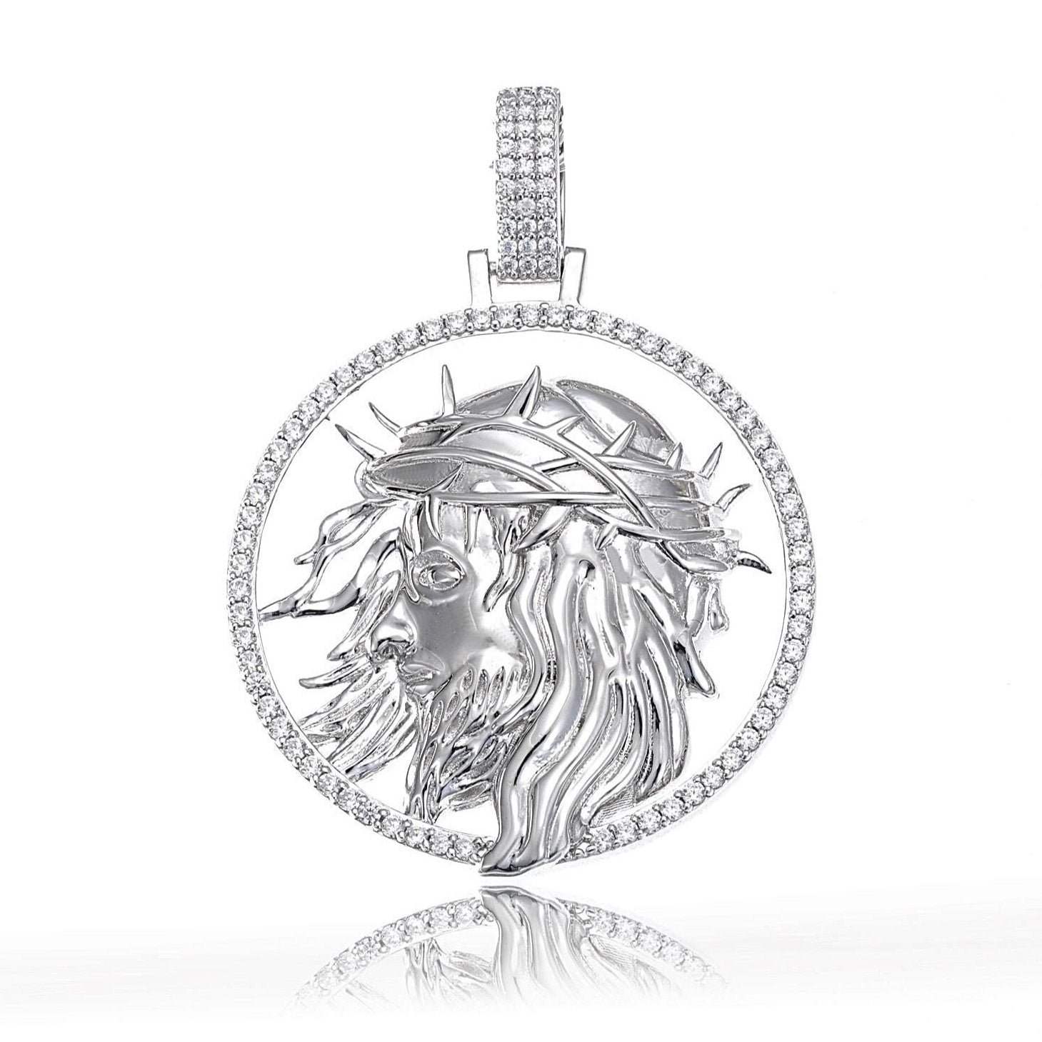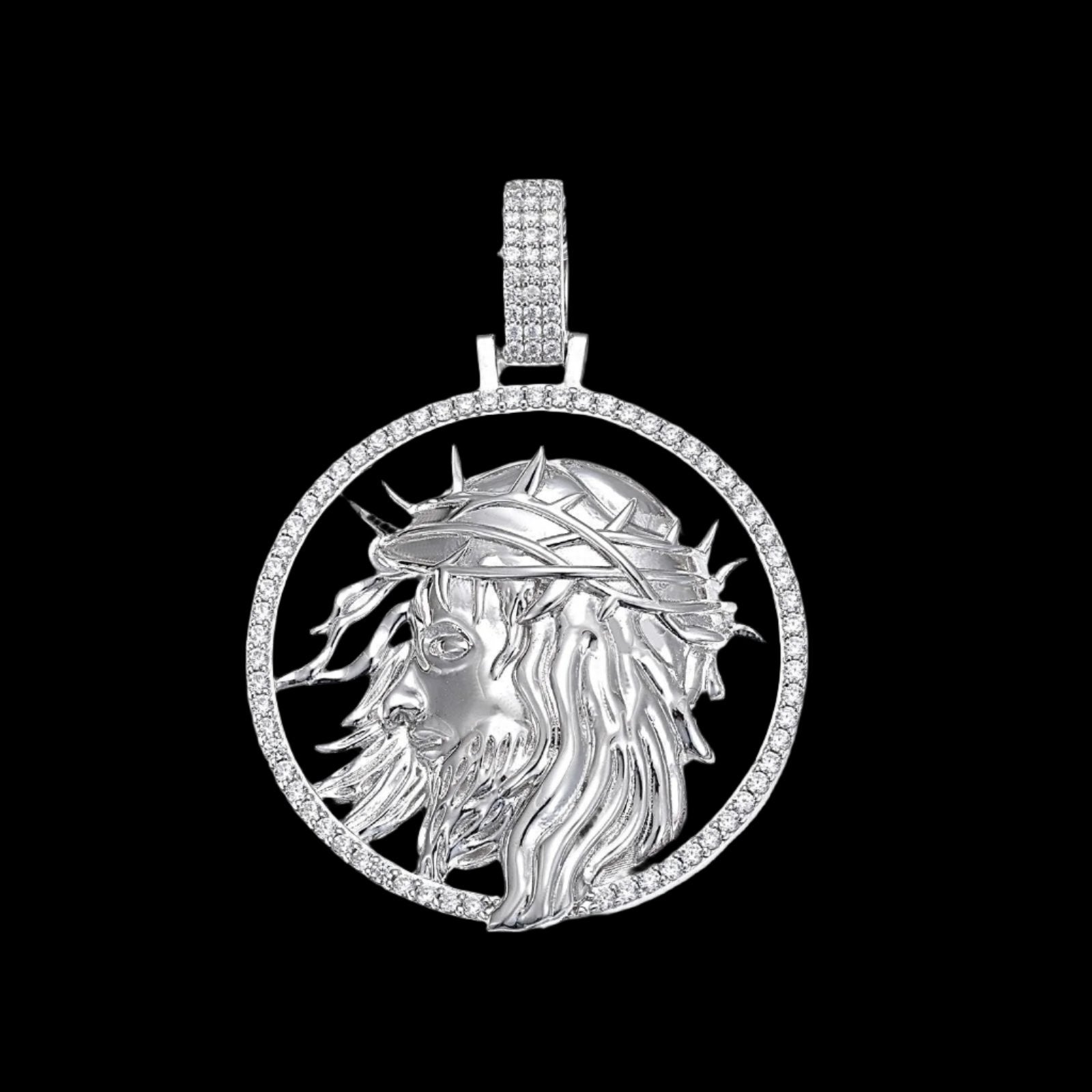 Jesus Face 1.5" Pendant Sterling Silver with Cubic Zirconia Round Charm - C400039