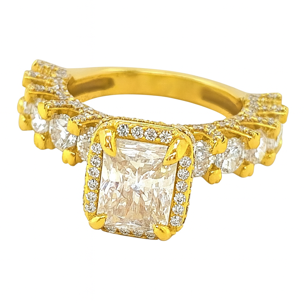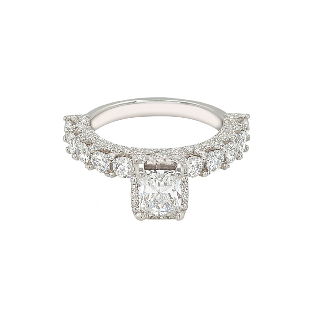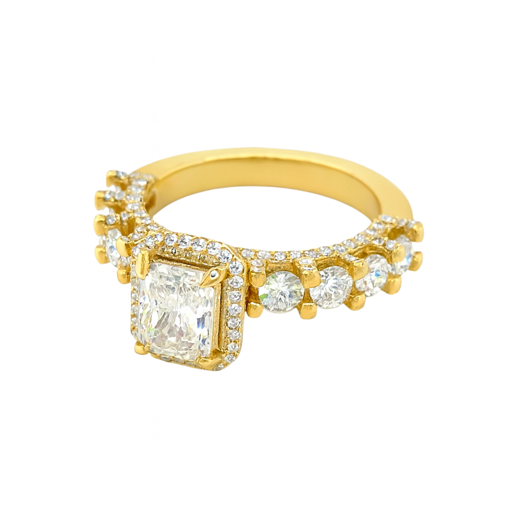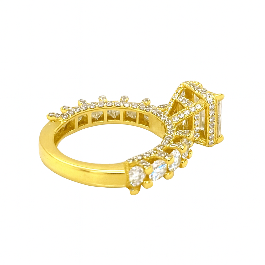 This sparkling engagement ring shines bright with lab-created moissanite stones set in durable 925 sterling silver. The baguette-cut center stone and round accents along the band add extra sparkle and charm. Finished with a white silver rhodium plating, it’s a dazzling and lasting symbol of love; ready to ship fast worldwide!
