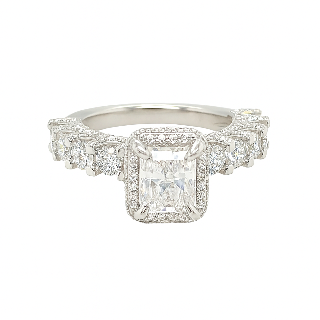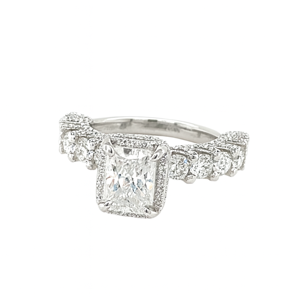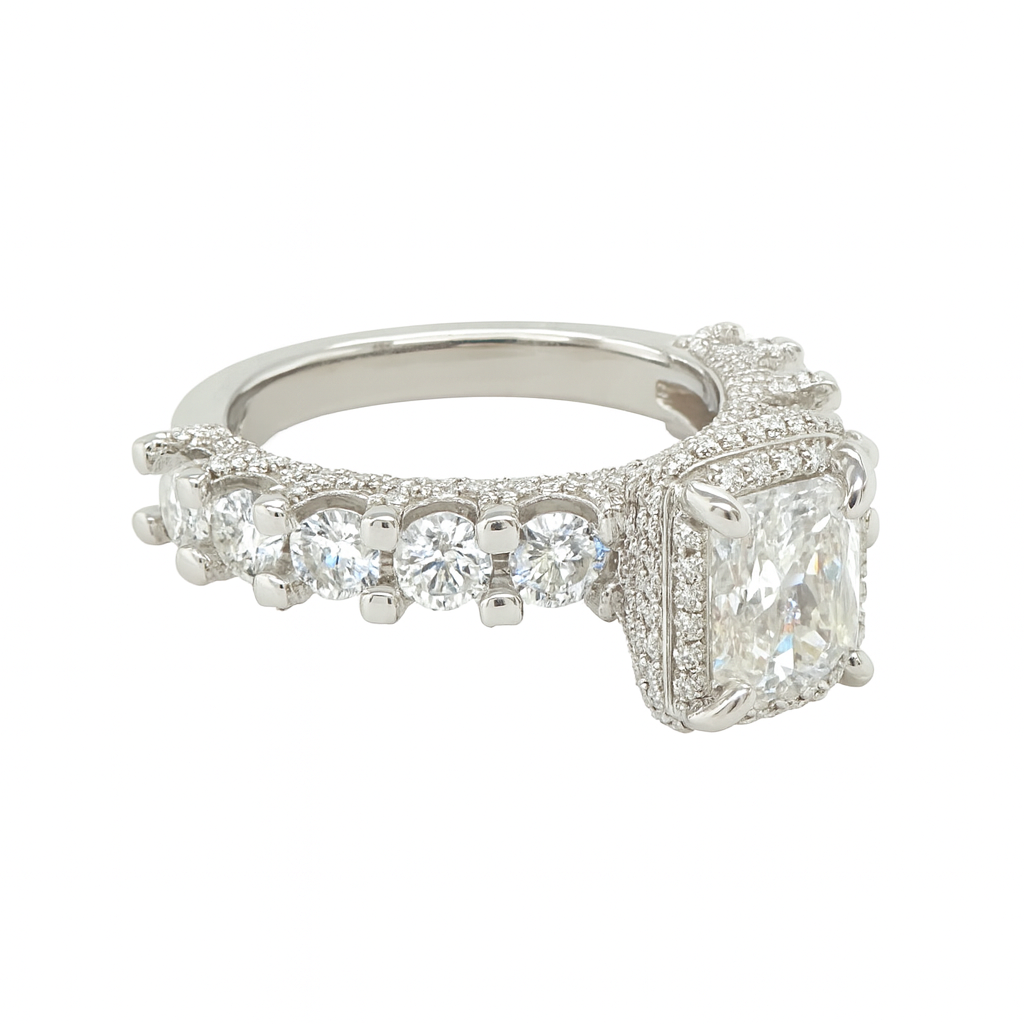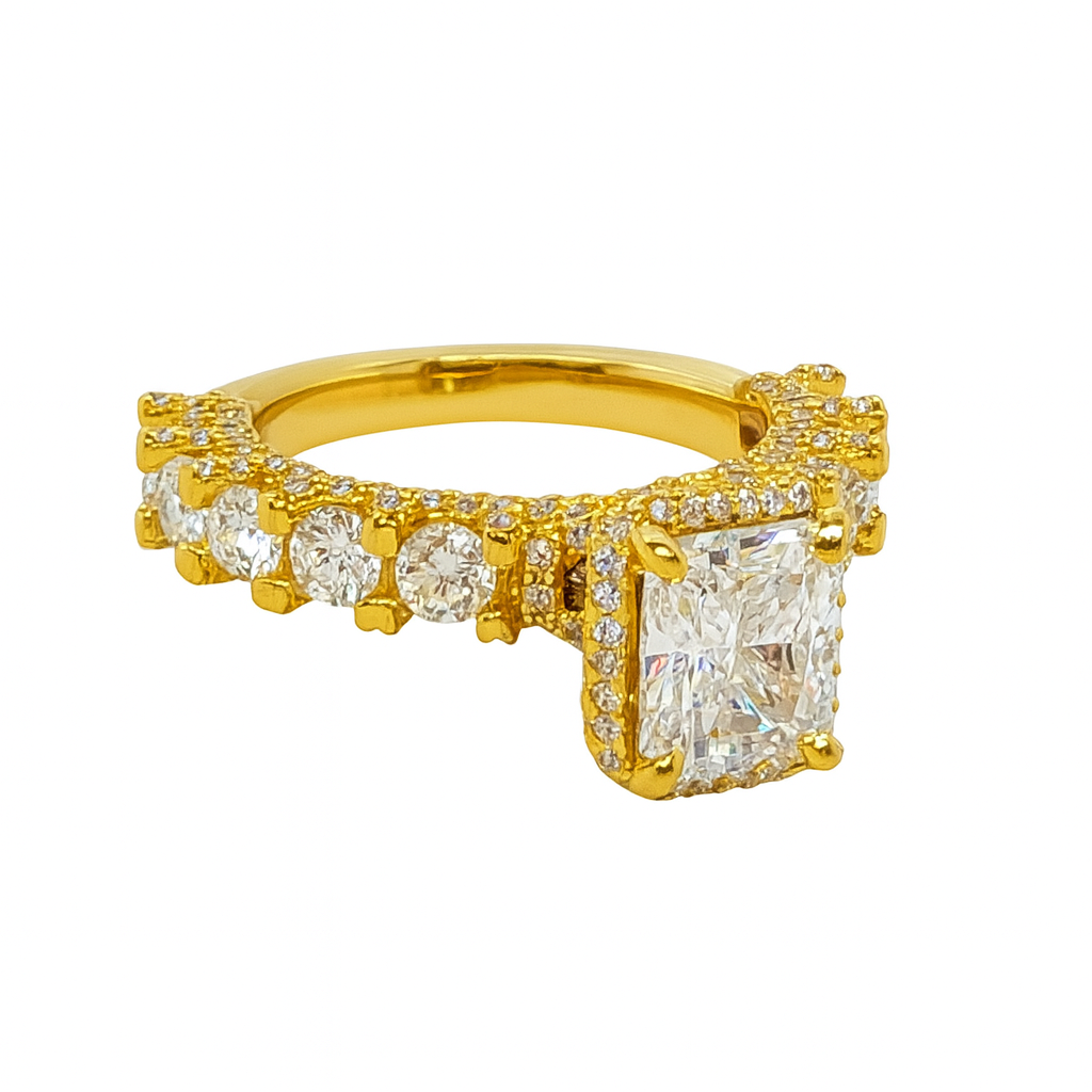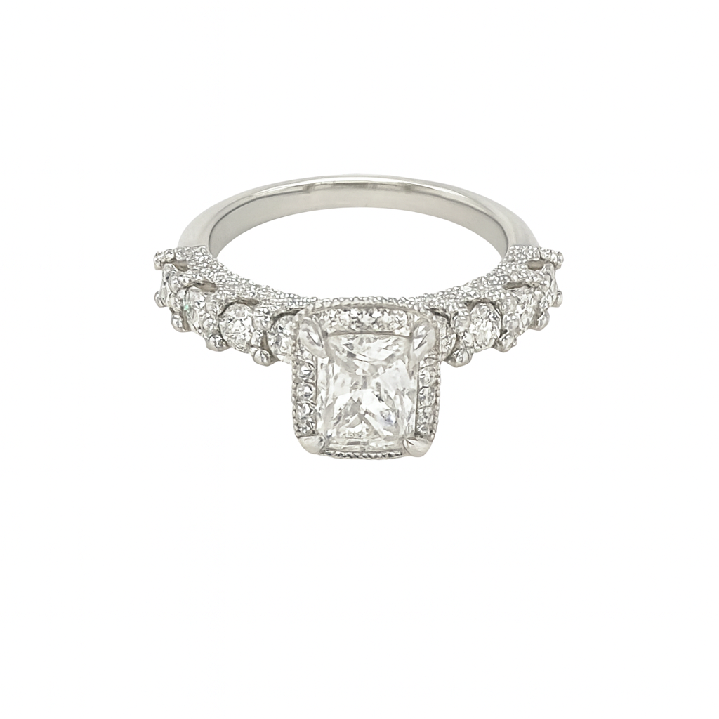 This sparkling engagement ring shines bright with lab-created moissanite stones set in durable 925 sterling silver. The baguette-cut center stone and round accents along the band add extra sparkle and charm. Finished with a white silver rhodium plating, it’s a dazzling and lasting symbol of love; ready to ship fast worldwide!