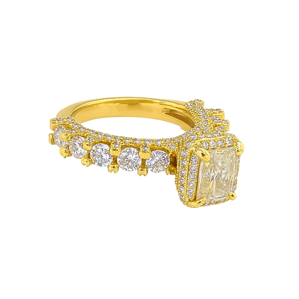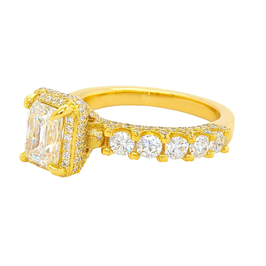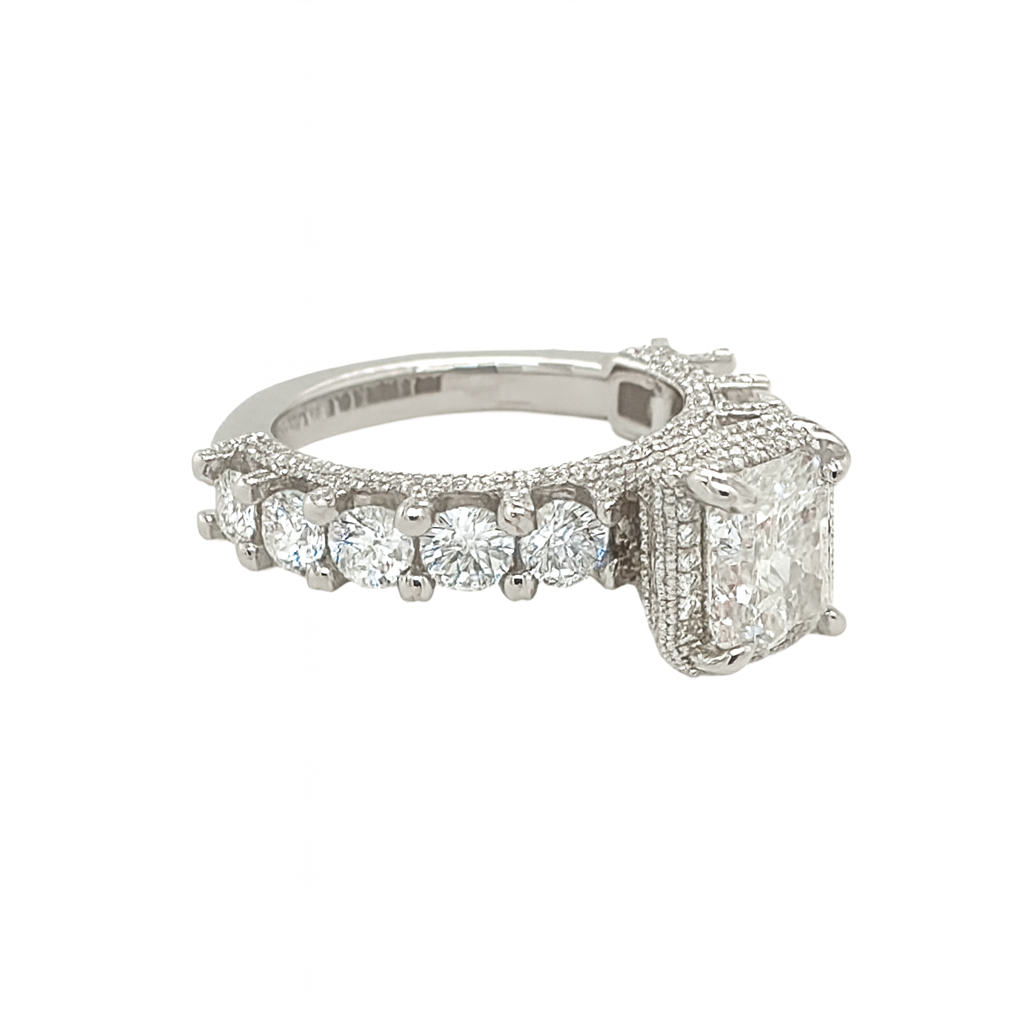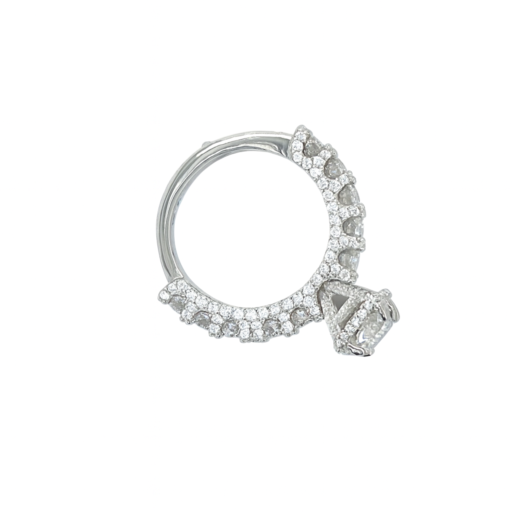 This sparkling engagement ring shines bright with lab-created moissanite stones set in durable 925 sterling silver. The baguette-cut center stone and round accents along the band add extra sparkle and charm. Finished with a white silver rhodium plating, it’s a dazzling and lasting symbol of love; ready to ship fast worldwide!