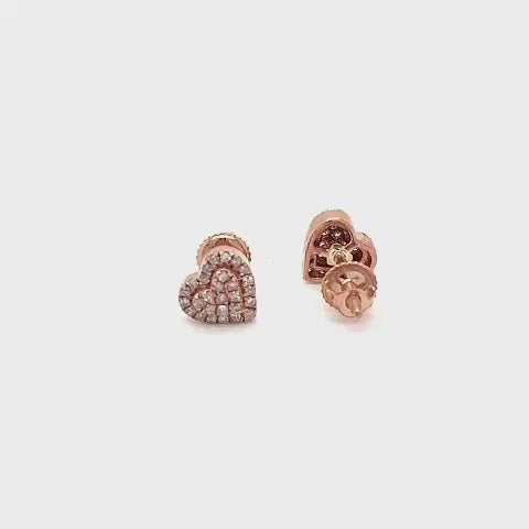 Crafted in 10K rose gold, these romantic heart-shaped stud earrings sparkle with a 0.23ct diamond cluster. Their warm blush tone and shimmering design make them a perfect gift of love or a versatile everyday accessory. Secured with screw-back posts for comfort and lasting wear.