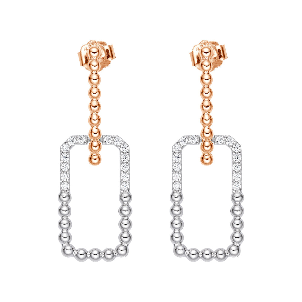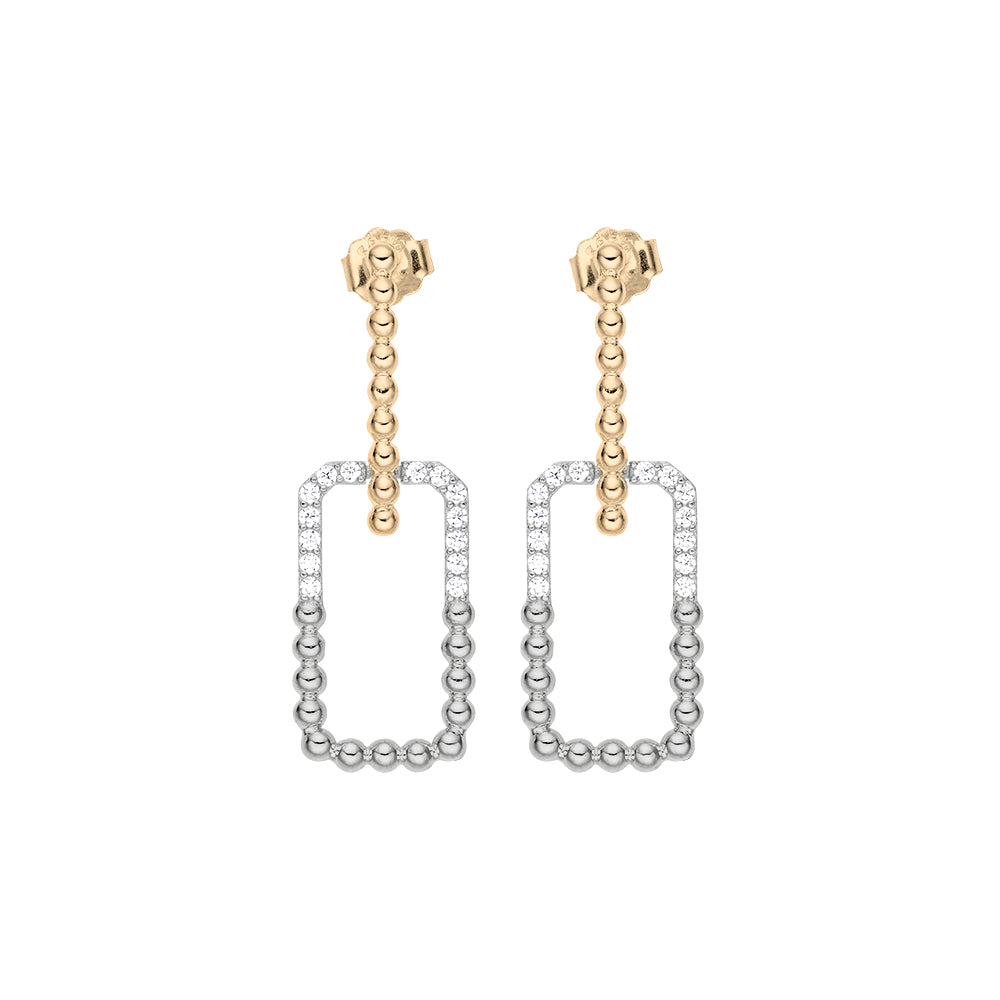 Sparkle Drop Link Dual-Metal Earrings