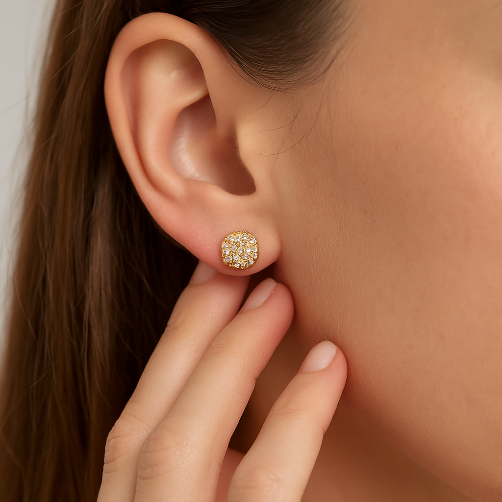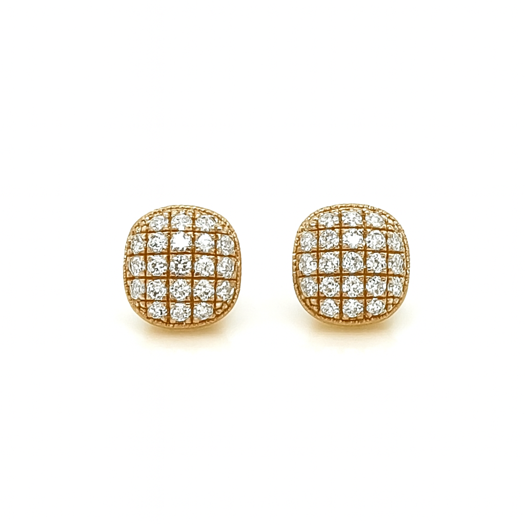 These 14K gold diamond stud earrings feature a bold cushion-shaped grid design, fully set with sparkling diamonds for a striking shine. With an approximate total weight of 0.71 carats, these studs balance luxury and everyday wear. Crafted in solid 14K gold and finished with secure screw backs, they’re built for both comfort and elegance.