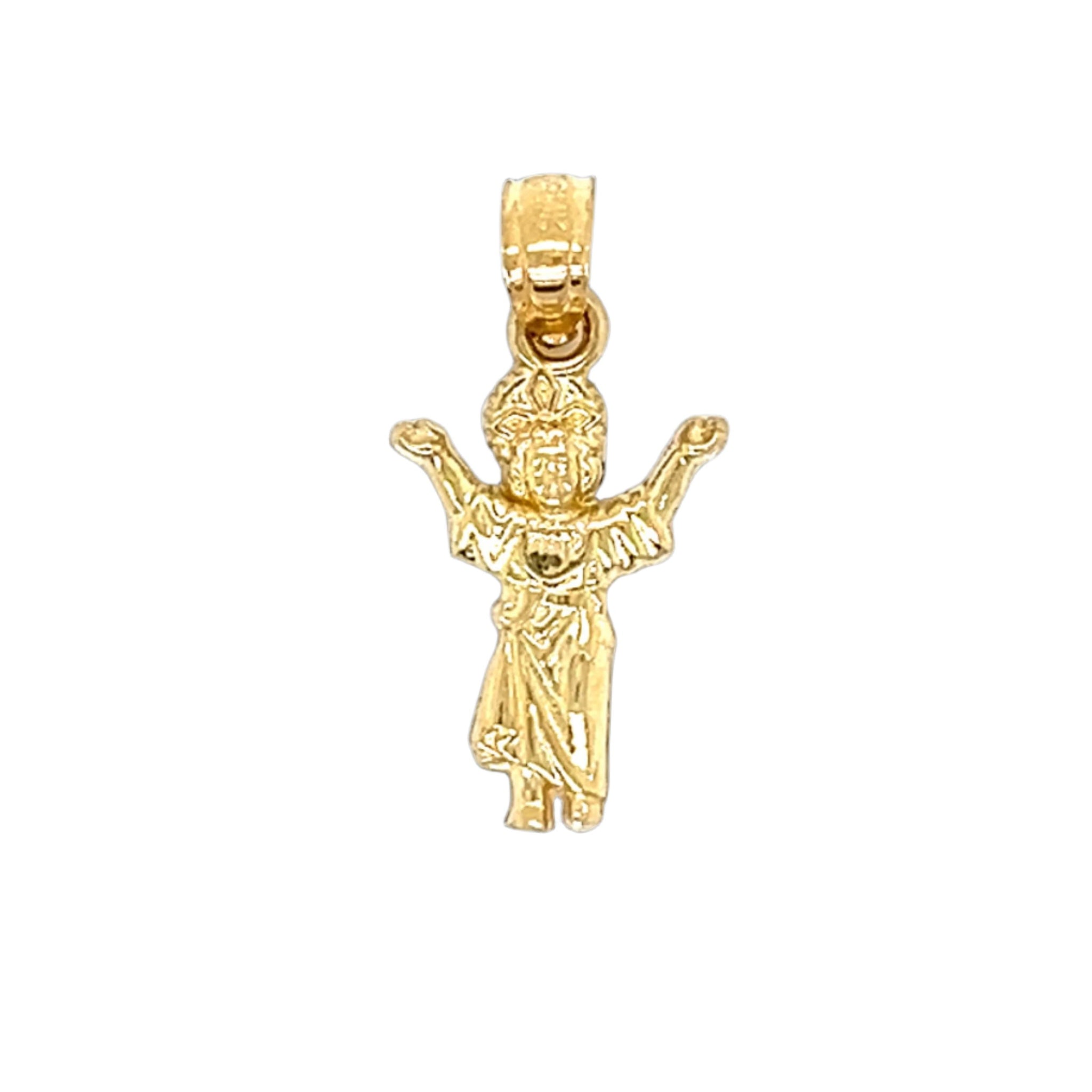 Stunning 14K Gold Baby Jesus Praying Pendant : Elevate your style with this 0.8" timeless beauty weighing 0.64G. Featuring High Quality of 14K Gold , it adds a touch of glamour to any look.