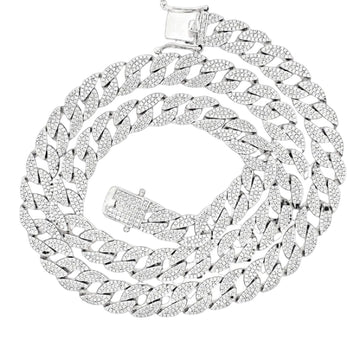 925 Sterling Silver Rhodium Plated Miami Cuban CZ Flat Chain
