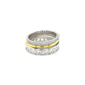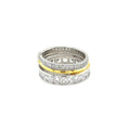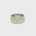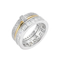 This dazzling sterling silver ring in size #8 showcases a stacked band style, blending channel-set princess-cut cubic zirconia with sparkling pavé accents for extra sparkle. A chic metal bar adds a trendy twist, boosting its luxe vibe. Perfect for turning heads, this playful piece instantly upgrades any jewelry lineup. Finished in white silver with yellow gold plating for added strength. Enjoy speedy worldwide express shipping!