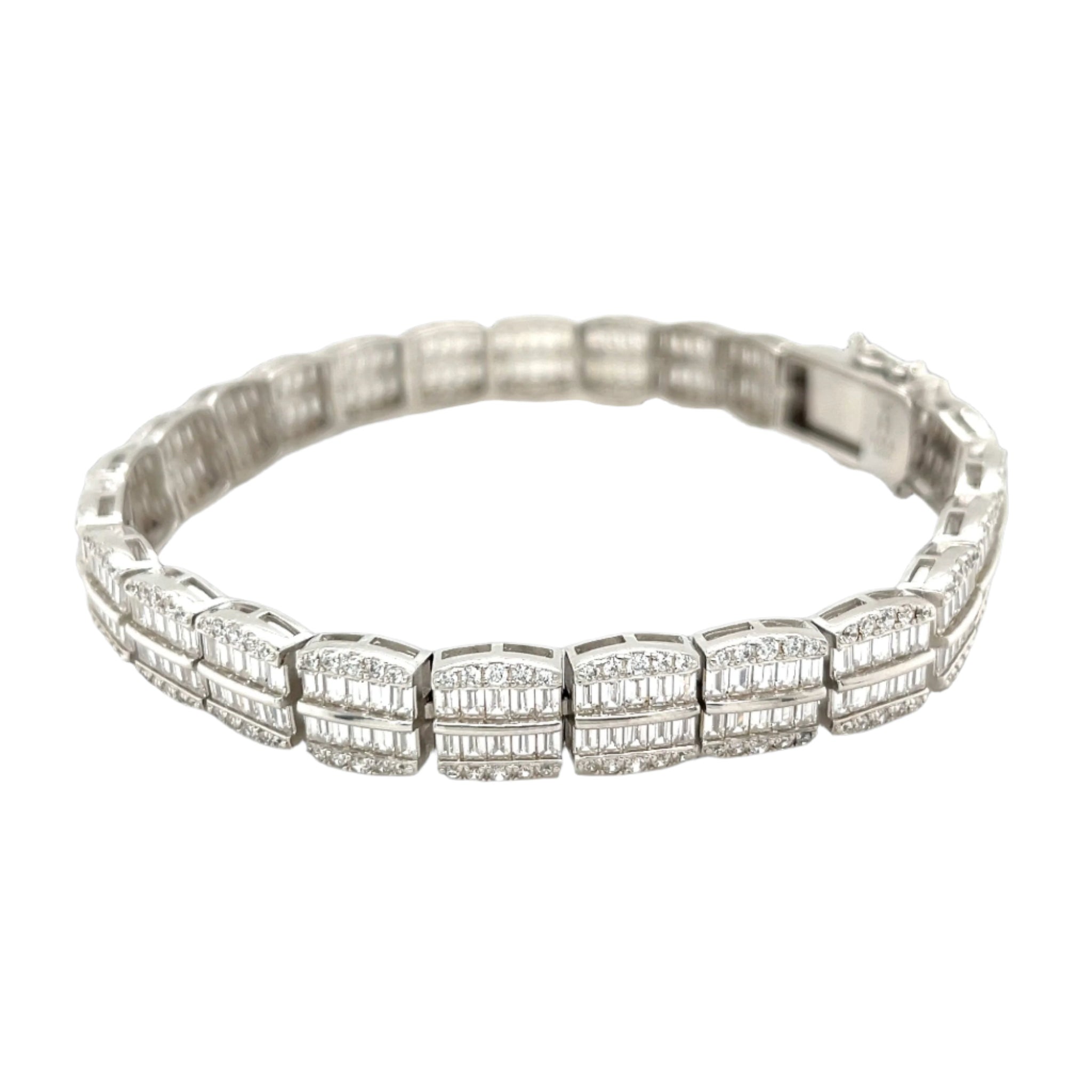 Fancy Diamond Cut Sterling Baguette Cubic Zirconia Bracelet