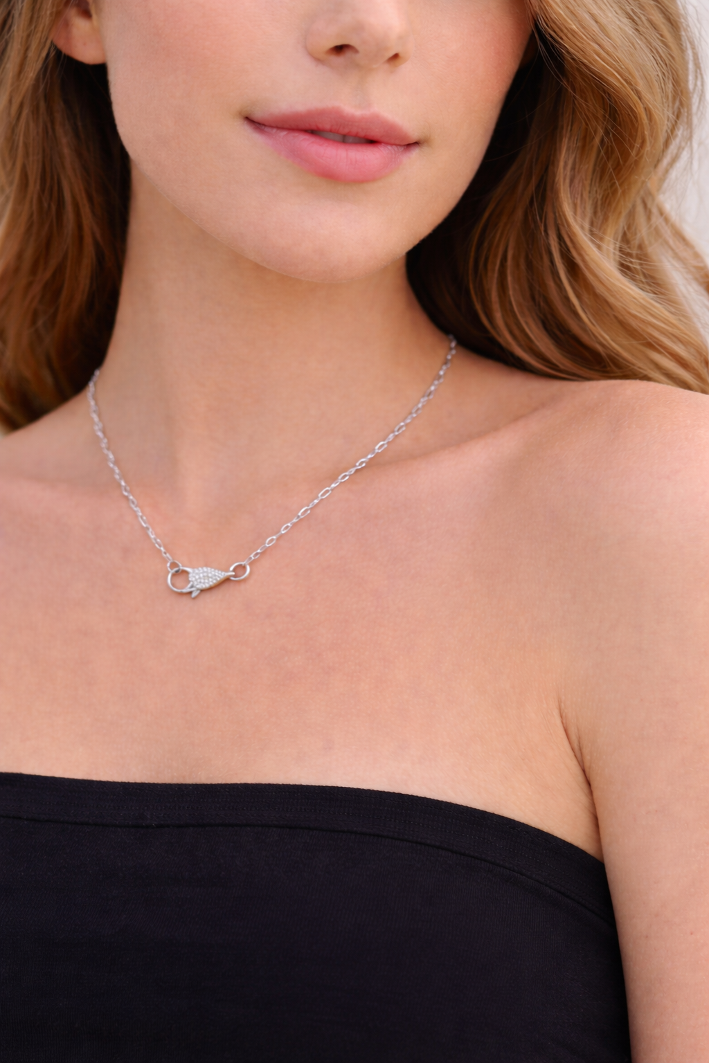 Pavé Lock Paperclip Necklace in Sterling Silver