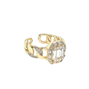 This stunning ring is crafted from 925 sterling silver with a shiny gold-tone finish and sparkling cubic zirconia accents. At its heart sits a bold rectangular stone, surrounded by a dazzling halo of smaller gems. The band’s open-link design adds a fresh, modern twist to classic elegance. Available in 14k gold-plated and white silver-plated options for extra durability, it’s the perfect playful sparkle for any occasion. Plus, enjoy speedy worldwide express shipping!