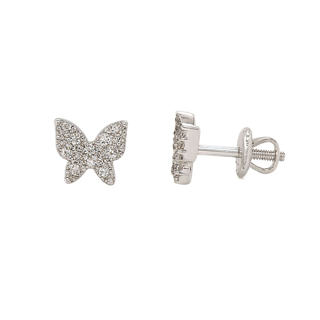 Diamond Whisper Butterfly Studs in 10K White Gold