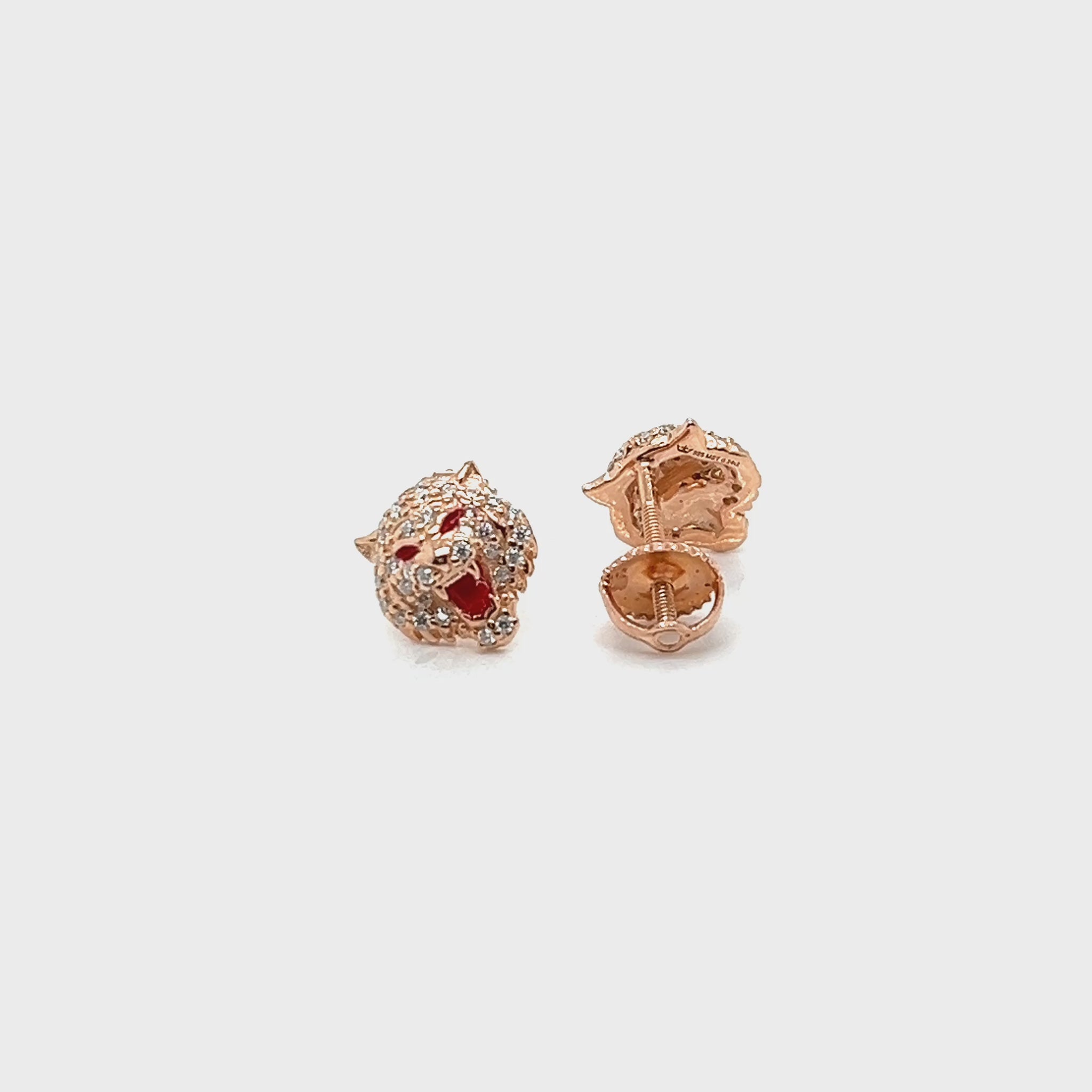 Unleash bold style with these 10×9.5mm tiger head stud earrings, crafted in solid 925 sterling silver and detailed with fierce red enamel eyes and mouth. Available in silver color, gold color, or rose gold color, they come with your choice of shimmering Cubic Zirconia or .28ct moissanite for a fierce sparkle that passes a diamond tester. The screw-back posts provide a secure, comfortable fit, making them the perfect statement piece for anyone who likes their jewelry with an edge.