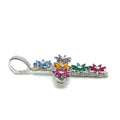 Celebrate faith and style with this cross pendant crafted in sterling silver, adorned with 2.46 carats of shimmering moissanite and a vibrant array of multi-colored gemstones. Each arm of the cross is designed with floral motifs, creating a striking display of color and sparkle. Available in both silver and gold tones, this pendant makes a meaningful and elegant addition to any jewelry collection.